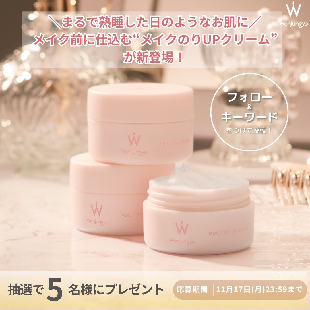 🩷𝑷𝒓𝒆𝒔𝒆𝒏𝒕 𝑪𝒂𝒎𝒑𝒂𝒊𝒈𝒏🧡 ウォンジョンヨ モイストセットアップクリーム まるで熟睡した日のようなうるおい感じるお肌になれる メイク前に仕込むクリームが新登場! 11月14日(金)19:00~インスタライブにて新商品の魅力をお届けします✨