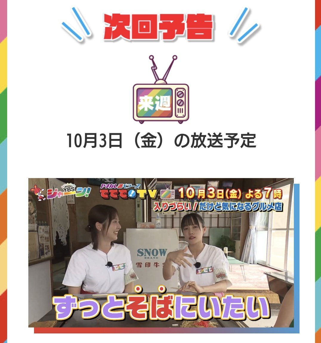 遅ればせながら(サーセン🙇) 西桂町のプチ旅回をTVerさんで視聴 (だっふんだ!を突然ブッ込まれww 瞬時に対応したゆってぃに拍手かっさい👏) 生放送の醍醐味ですね💡 地名にミョーな親近感も覚え💧 美味しそーな🍙に🍮に唐揚げにハンバーグ♪ 週末探検調ベラーするんば! #てててTV #YBS山梨放送