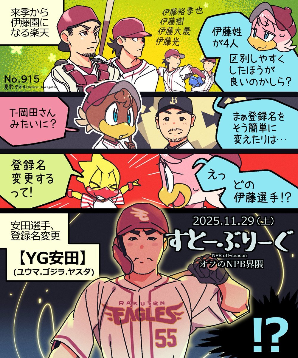 ヤスダヨーグルトだよ。 #ヤスダヨーグルト #YG安田 【楽天】「何かを変えようと」ユウマゴジラを名乗り活躍誓う 安田悠馬が「YG安田」に 2選手の登録名変更を発表 - スポーツ報知 hochi.news/articles/20251…