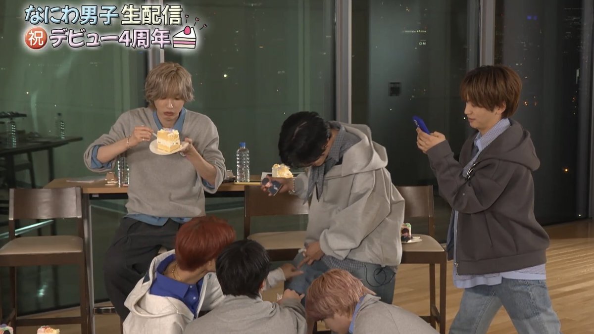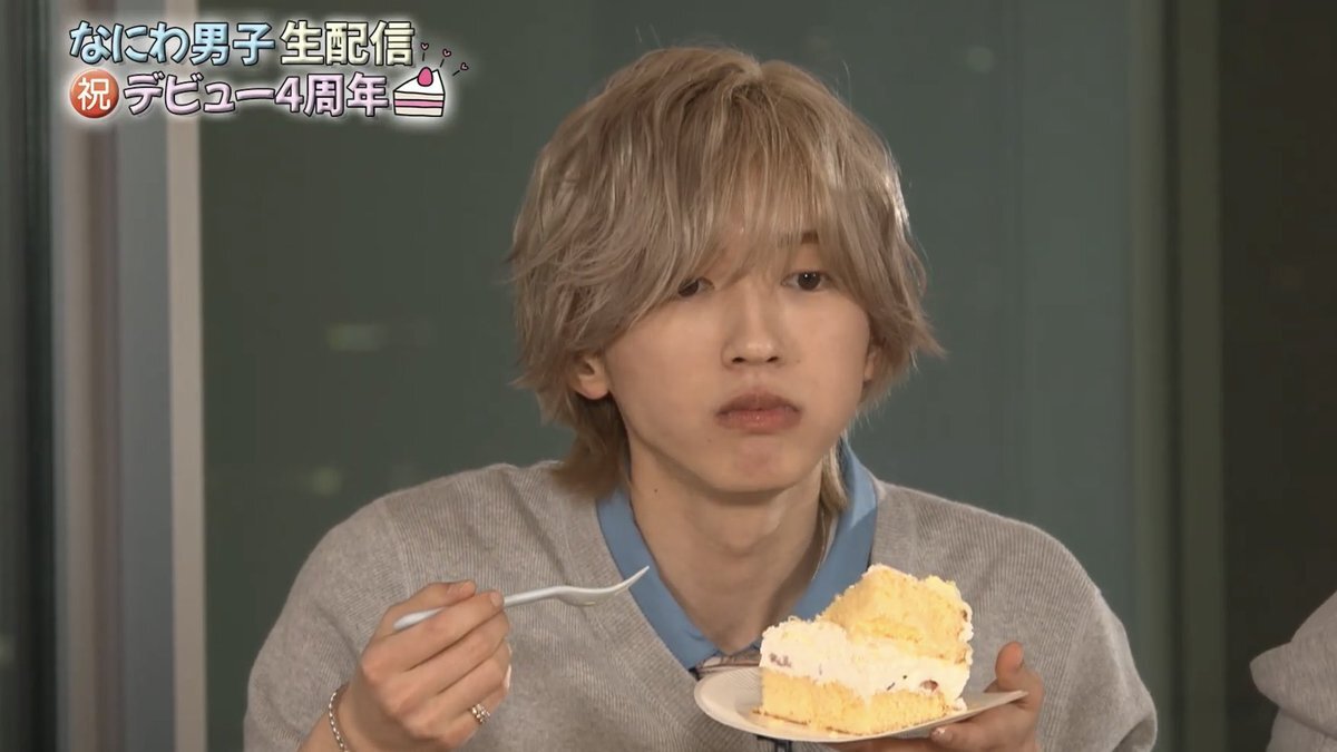 YouTube生配信のアーカイブを見てたんだけど、謙杜がケーキこぼすとこで終わってた😭 続きは出るんだろうか… #なにわ男子 #4周年 #YouTube生配信