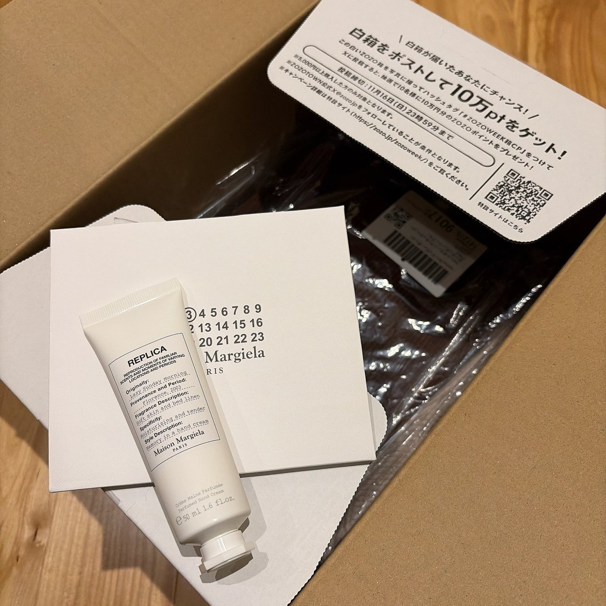 靴とリップを買ったら、初めて黒くない箱で届いてびっくり!! 幸運の白箱テンション上がりました! もし10万ポイント当たったらコートとバッグ買いたいな #ZOZOWEEK白箱CP pic.x.com/Vi4oWOhuib