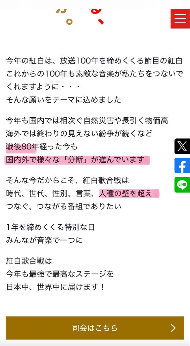 紅白のテーマがコレなのに原爆を嘲笑した人種差別主義者の外国人を呼ぶのか。 #aespaの紅白出場取消を求めます pic.x.com/chsYWcOyK1 x.com/nhk_kouhaku/st…