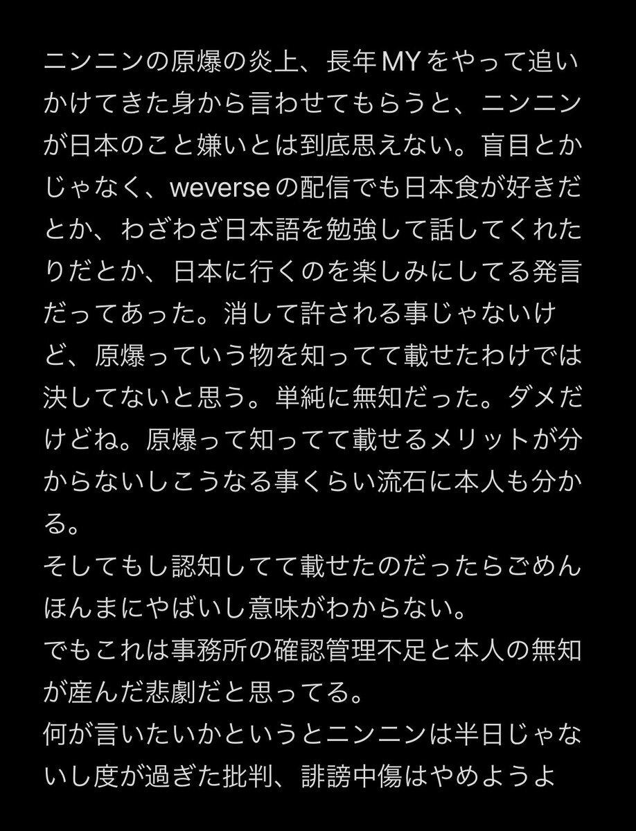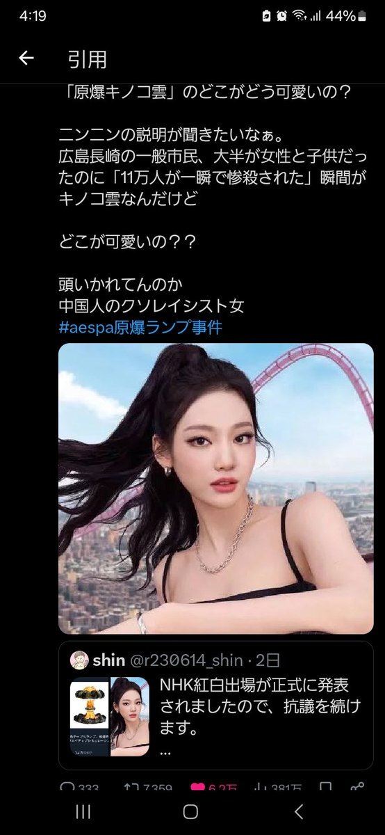 ニンニンの原子爆弾の投稿、炎上について aespa4年目のファンより