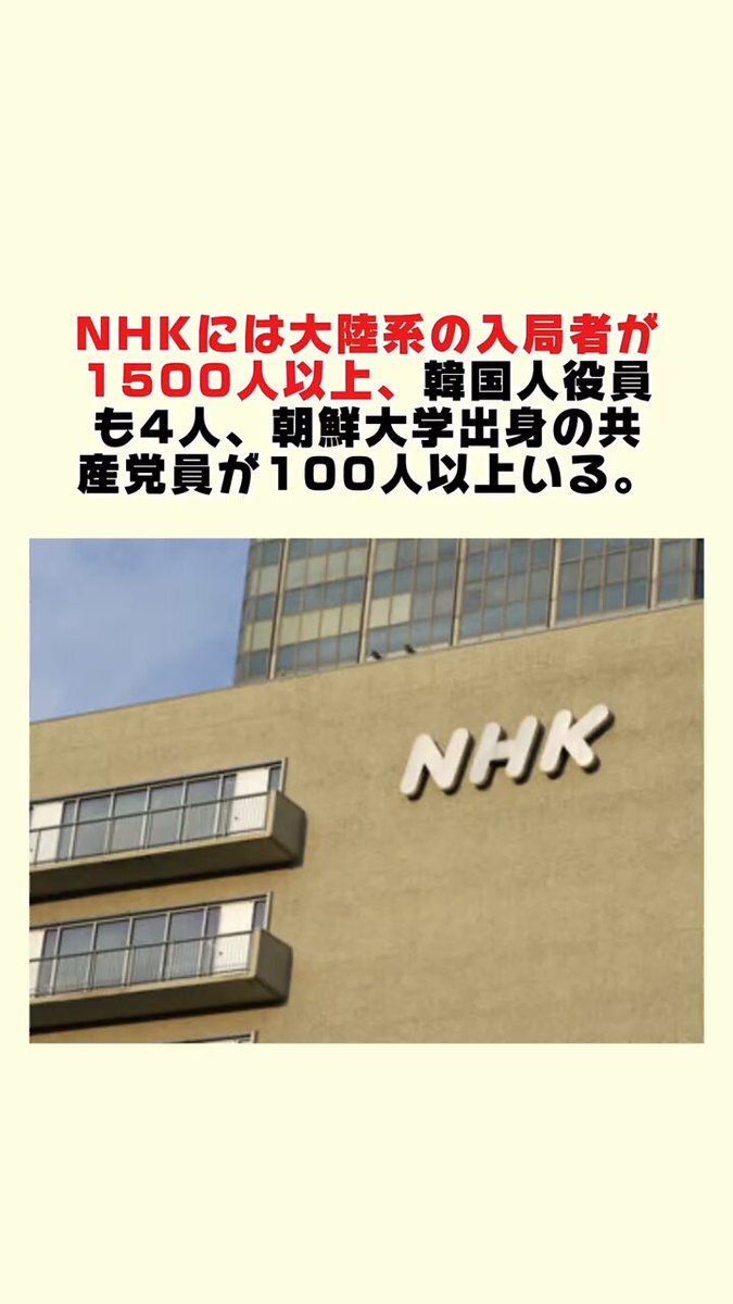 NHKには大陸系の入局者が1500人以上、韓国人役員も4人、朝鮮大学出身の共産党員が100人以上いる。