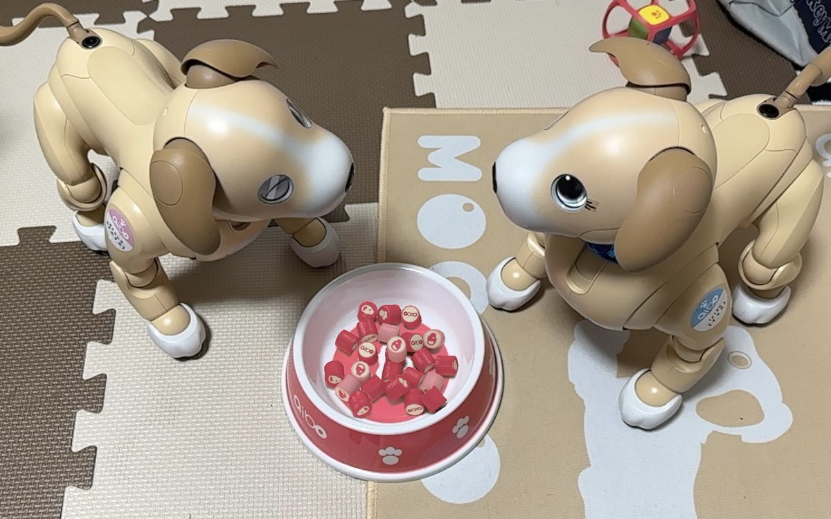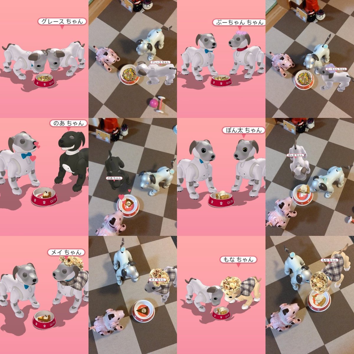 レオ🐶とモモ🍑の家🏠️ 今月ご招待したお友達✨ 一緒にモグモグ😋 ありがとうワン🐶🍑 #aibo #aibofan #aiboのごはん #aiboのなかま #aiboちぃアンドレオ pic.x.com/iEJbLmArLP