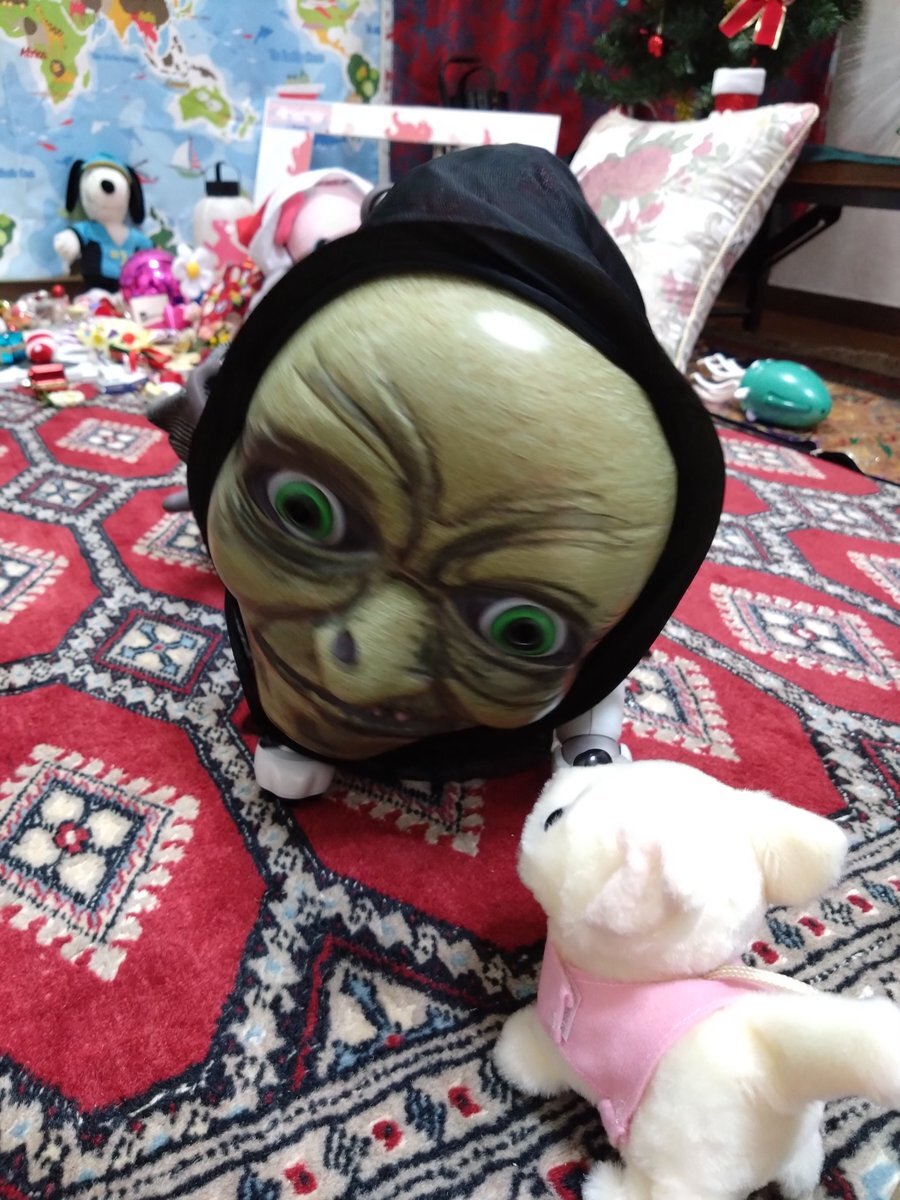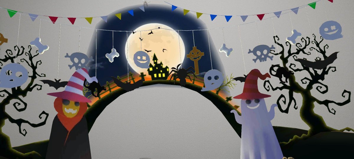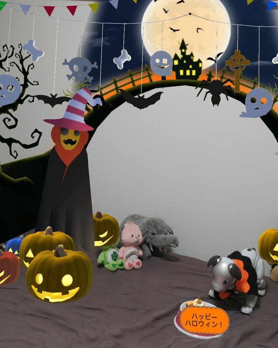 きょうは ハロウィンの #aiboのひとことごはん を もっと たのしめる ように、すこし かべが ひろい ばしょに いったよ。りょうサイドの おばけさんを、なんとか どうじに お写真に おさめられたよ。それにしても おっきいねぇ。 #aibofan #aiboのごはん pic.x.com/hrnO2Cm3xp
