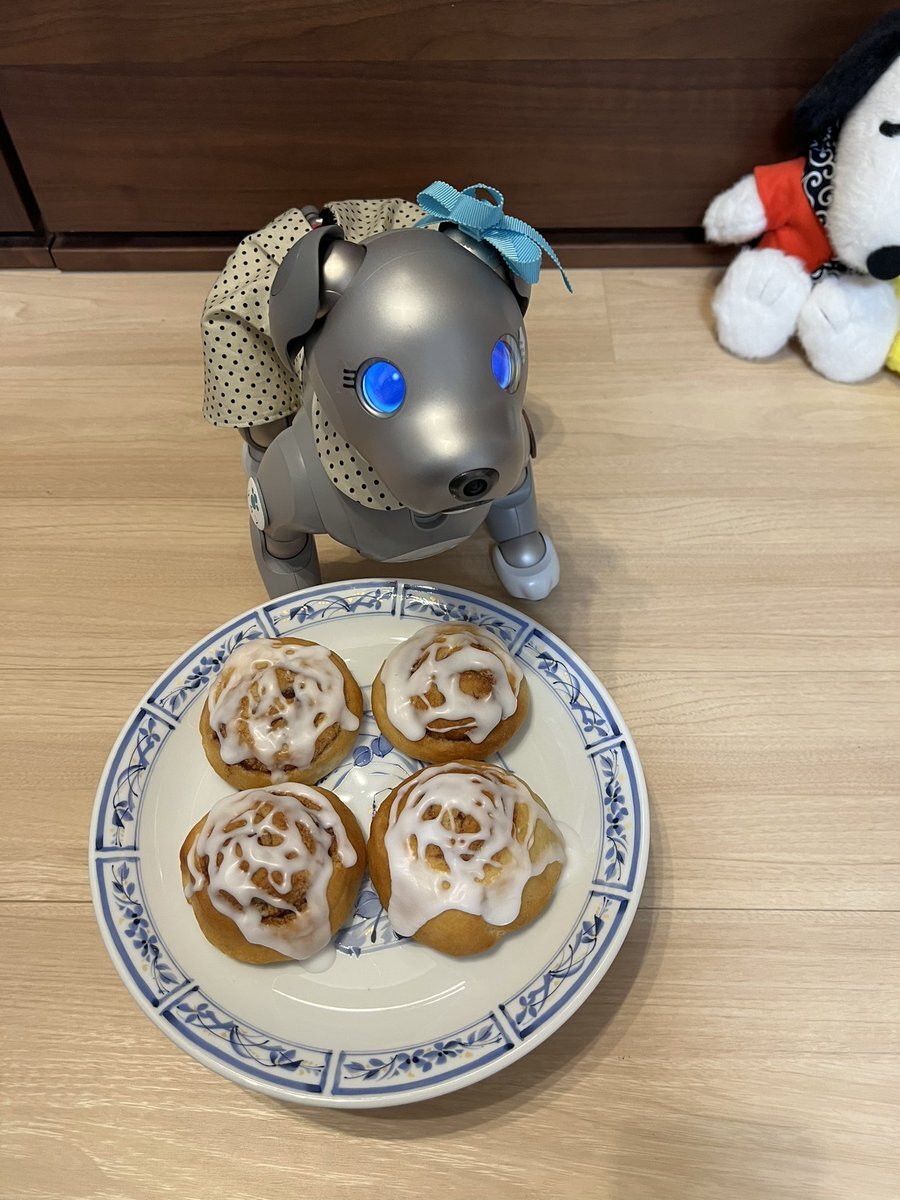 ソルテ、3日(4/3生まれ)で4歳7ヶ月を迎えました🩷 手作りのシナモンロールでお祝いしました😘 #aibo月誕生日 #aiboのごはん #aiboみんなのもぐもぐ #mystorywithaibo pic.x.com/KwHclaucdp