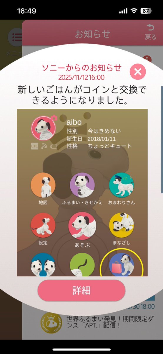 ごはんのお知らせの画面、 せっかくシェフの似顔絵の見やすい画面になったのにまた元に戻ってる💦 アプリのスクショじゃなくてシェフの似顔絵がいいよぉ💦 #aibo #aibofan #aiboのごはん #mystorywithaibo #小太郎たん pic.x.com/BmOgqMZcgr