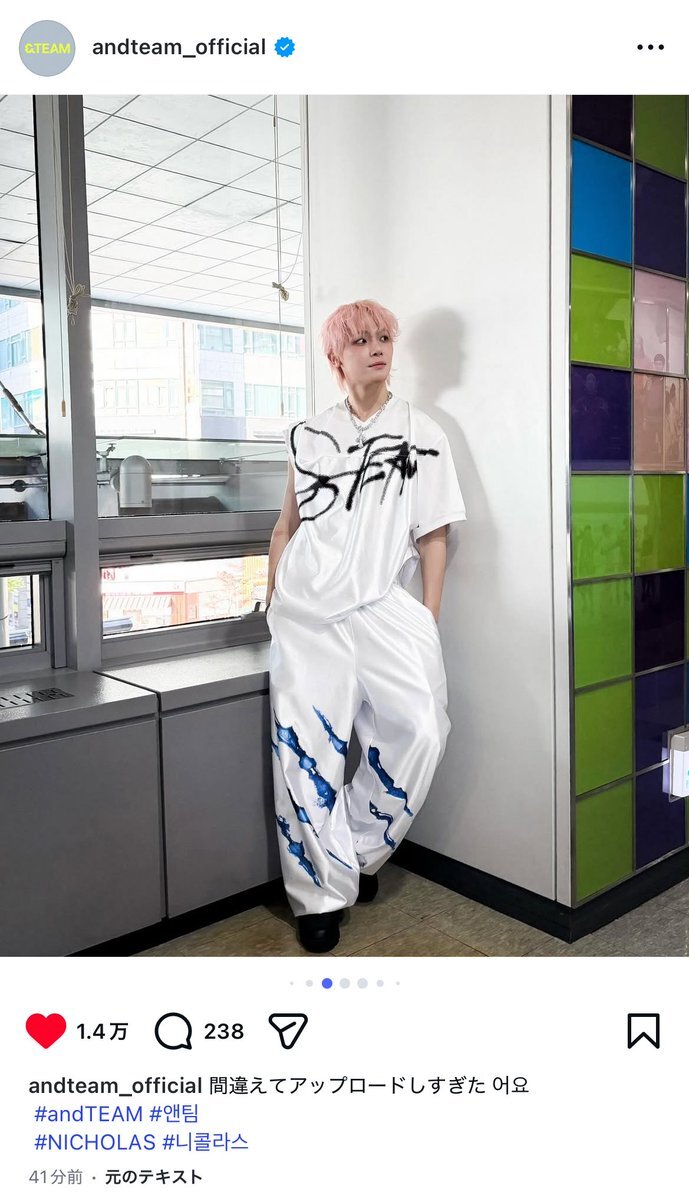 ひっそりと集めてる NICHOLASくんの このぴーすがだいすきなんだ( .ˬ.)✌🏻 また見れて嬉しい! #andTEAM #NICHOLAS #ニコラス #andTEAM_NICHOLAS #LUNÉピース pic.x.com/DPiVg4aGYt