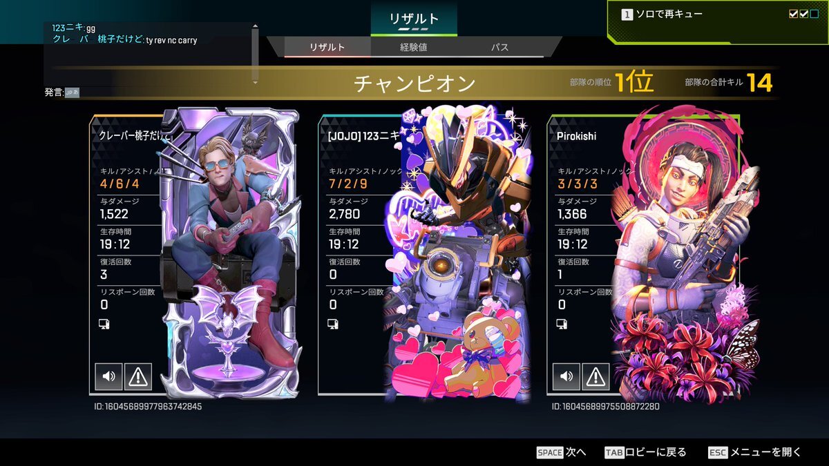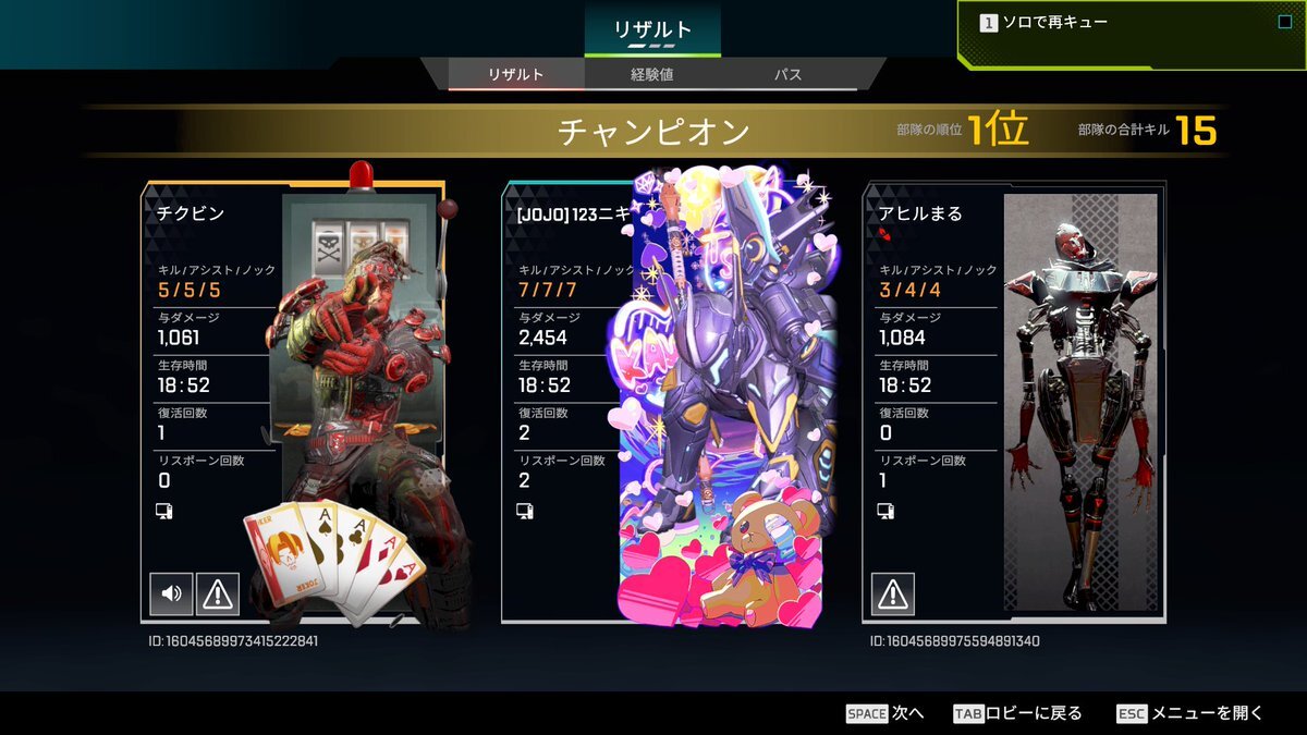 昨日味方にキャリーncって言われたし キル、アシスト、ノックが7で揃った( ◜ᴗ◝) 良きでした #APEX pic.x.com/Jij9uD2VkG
