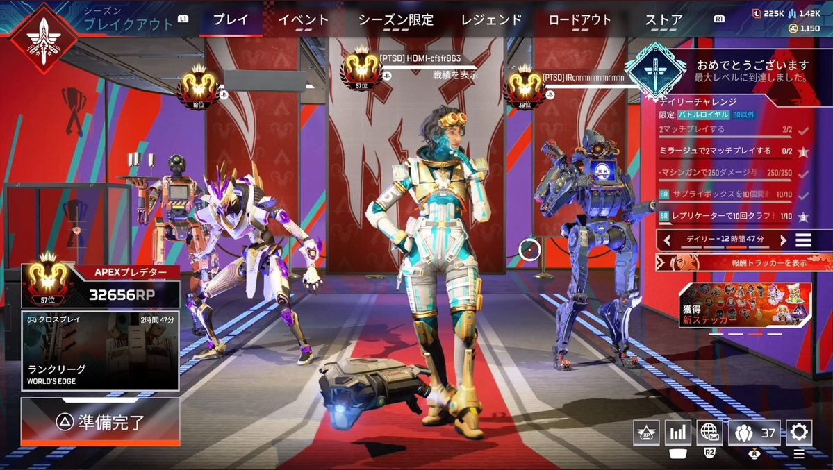 algs year6 pqに向けて@2 日程が出ない事には確実に出れるとは言えませんがそれでも良ければ s27復帰勢 【pc/cs】s10〜23,27ソロマス s13プレ s27ソロマス2周目中 準決勝複数回 IGL以外 基本なにも考えずにやってるタイプなので緩い方お願いします。指示厨の方はご遠慮下さい。 #apex