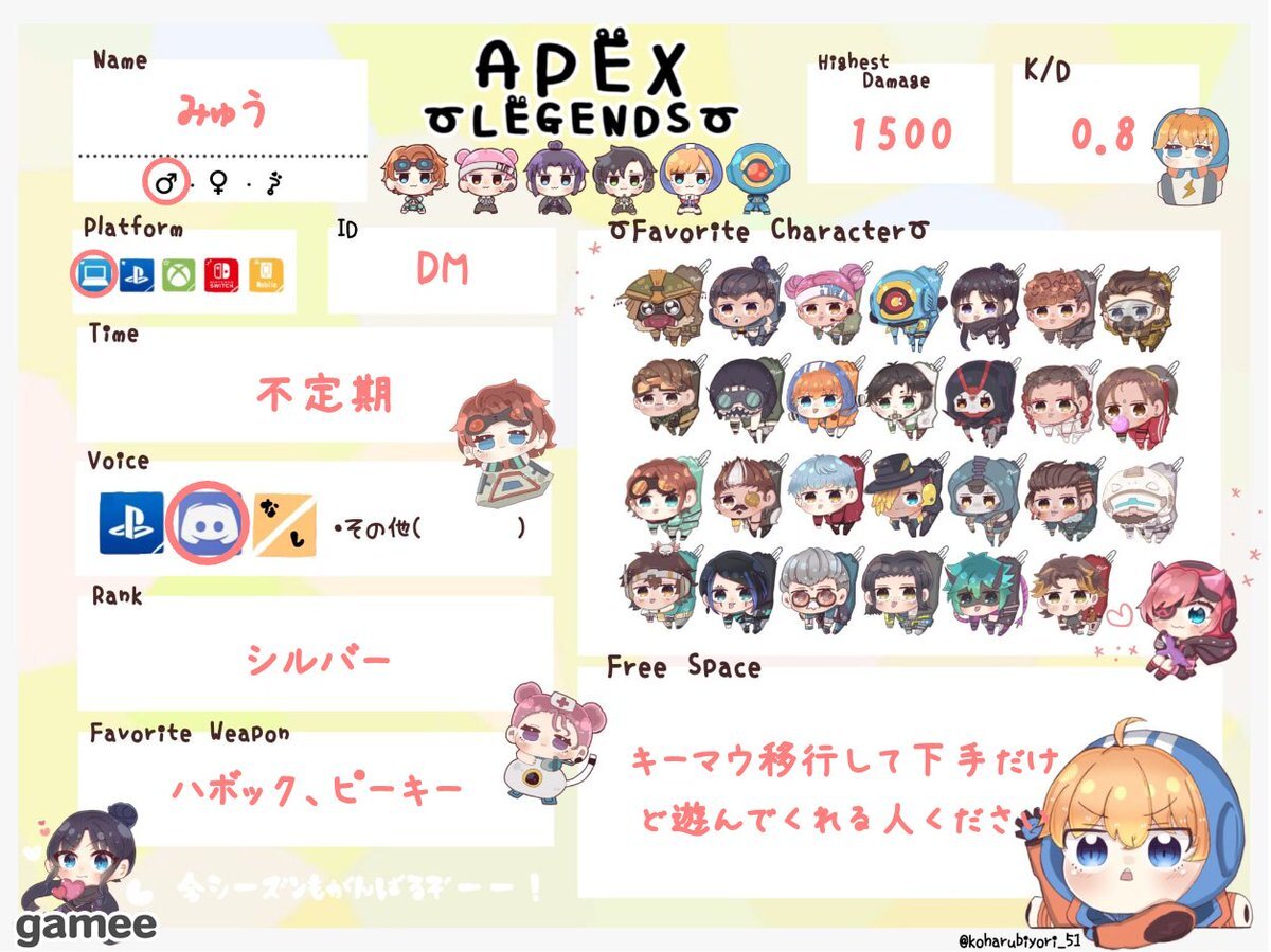 CS→PCキーマウに移行しました! 男女問わず下手でも暴言吐かない人とフレンドなりたいです #APEX #apexフレンド募集 #Apexpc募集 #Apex自己紹介カード pic.x.com/ks0vzClAKv