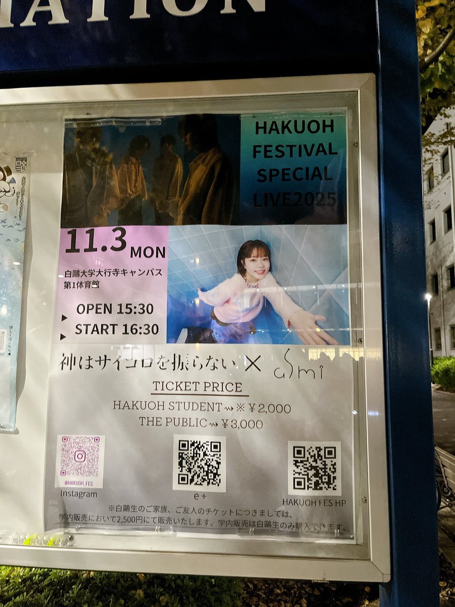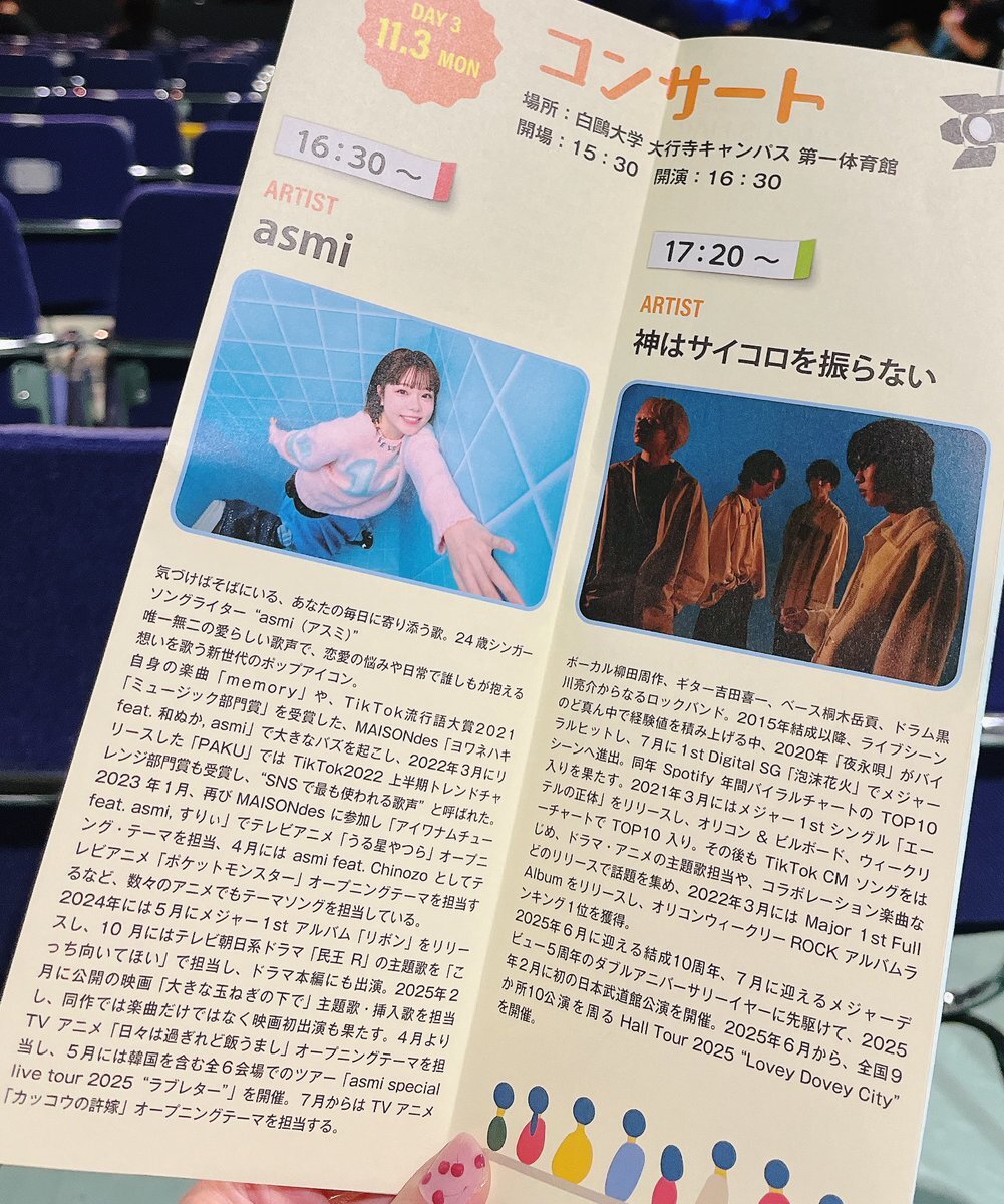 朝靄に溶ける1年ぶりに生で聴けて幸せでした😌 asmiちゃんのライブもめっちゃ久々になってしまったけどお気に入りのモカリバー着て行った🍫🏫 女祭りぶりの神サイ🎲 ちょっと遠かったしぎーくんの喉が心配だったけど歌ってくれて伝えてくれて本当にありがとう🫶🏻 パネルも素敵🕊️ #神サイ #asmi #白鷗祭 pic.x.com/BmGY4BMisa