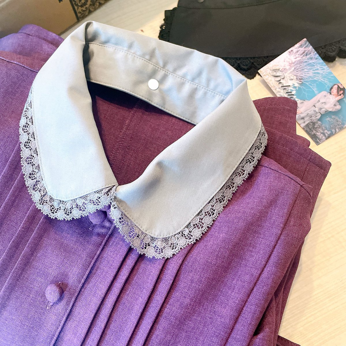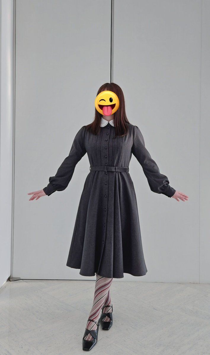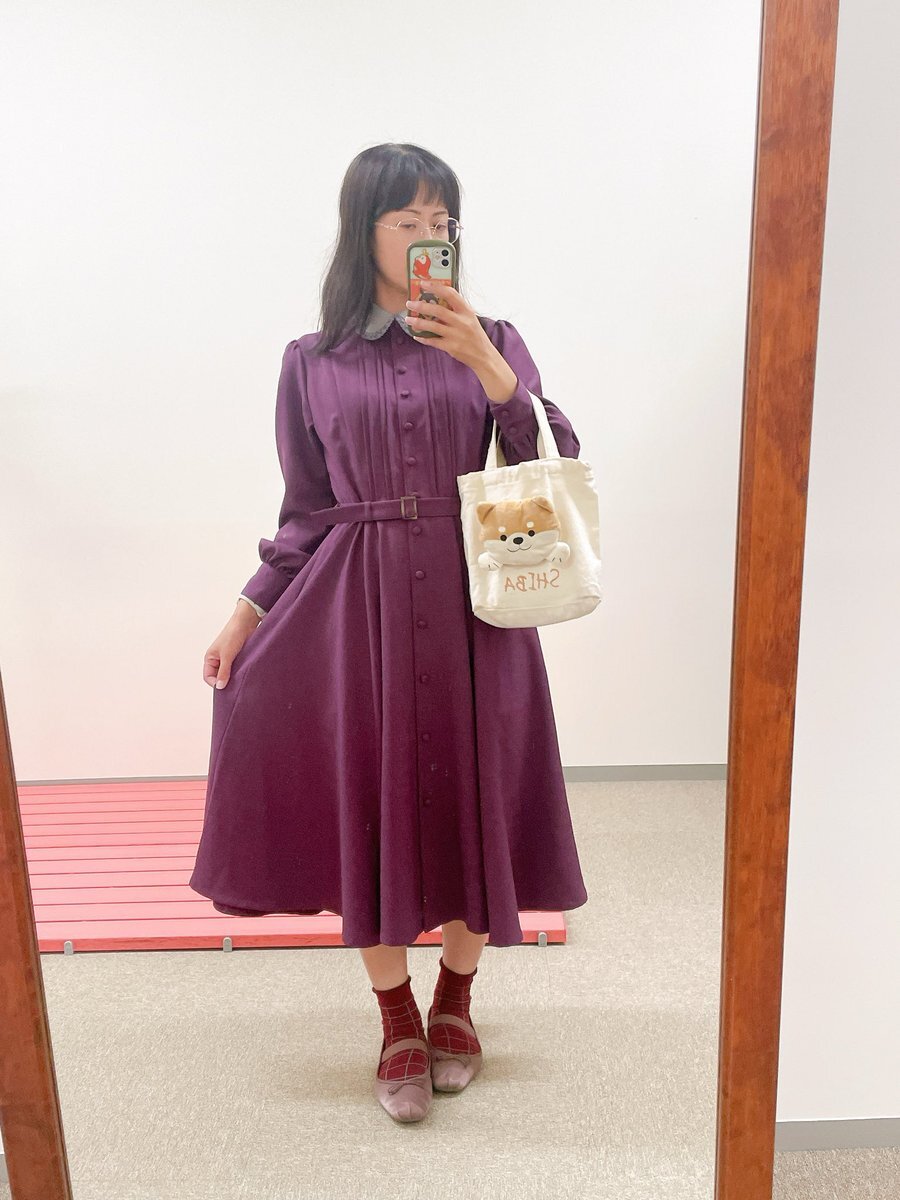 スペアカラードレスやっと着れました💜 トッピング(付け替えられる襟)も買ったけど、初回なのでとりあえずそのままのグレーで着てみた。 インカメ瀕死なのでボヤボヤですみません🥲 #belette_code pic.x.com/nQNZcPqjya