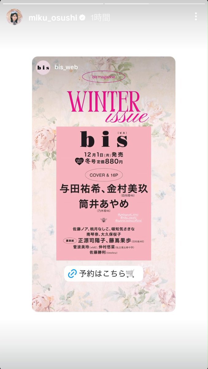 𝚌𝚘𝚖𝚒𝚗𝚐 𝚜𝚘𝚘𝚗𓂃 ໒꒱ 𓈒𓏸 12/1(月)発売《#bis冬号》 #与田祐希 さん #日向坂46 #金村美玖 さん #乃木坂46 #筒井あやめ さん が登場⛄️ さらに裏表紙には #正源司陽子 さん と #藤嶌果歩 さん(日向坂46)❄️ 予約🛒 Amazon🔗amazon.co.jp/dp/B0FXDN2MYY セブン🔗7net.omni7.jp/detail/1107656… pic.x.com/sn7lpAHF9l
