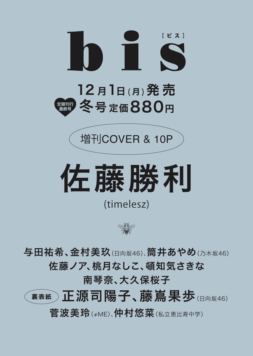 𝚌𝚘𝚖𝚒𝚗𝚐 𝚜𝚘𝚘𝚗 ໒꒱ིྀ༝⁺ 12/1(月)発売 《#bis冬号》は、bis定期刊行最後の一冊🌹 増刊カバーを飾るのは・・・ ⋰ #佐藤勝利 さん(#timelesz)❤️ @OVTT_official ⋱ 予約🛒 Amazon🔗amazon.co.jp/dp/B0FXDKP6RW セブン🔗7net.omni7.jp/detail/1263630… HMV🔗hmv.co.jp/product/detail…