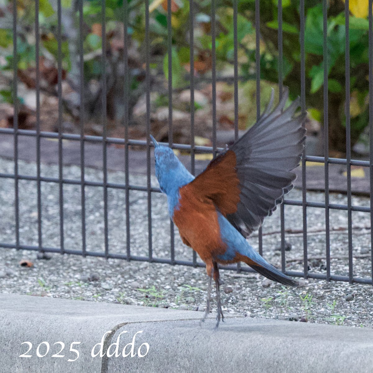 #イソヒヨドリ オスメス比較的近いところにいたけど、車が来てオスは #離陸^^; 2025.10.20 #宝塚北SA #D500 #500mmF56Epf #blueRockThrush #takeoff #bird #flight #photo #鳥 #飛行 #写真 pic.x.com/wBTv7MQlJU