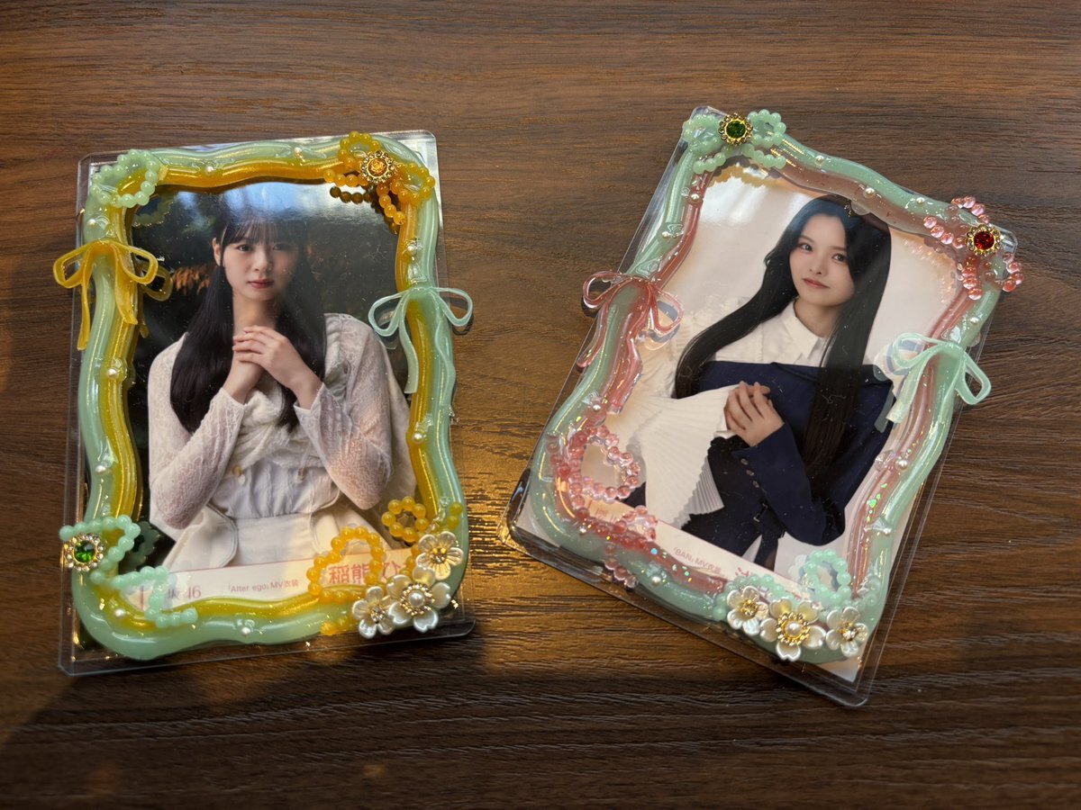 2個ボツったのは内緒🤫w 透明で後ろにデザペかシールか悩んだけどシールにしてみた。色違いも良さげ 穴あきは本物のリボンでもいいなぁ。。。 #Buddies硬質デコケース部 #k_deco_atelier #トレカデコ pic.x.com/fGHzL3JQEG x.com/k_skrzk46_kei/…