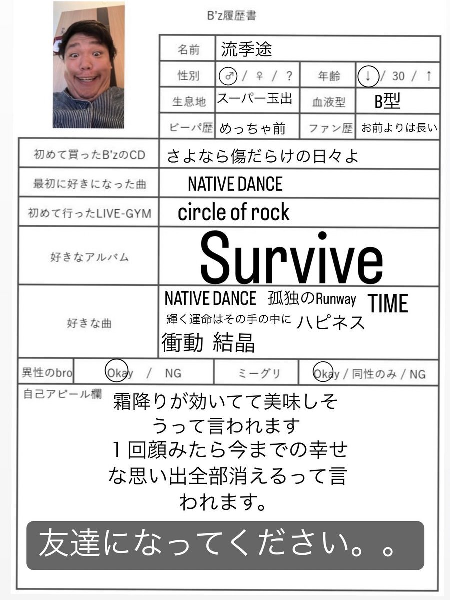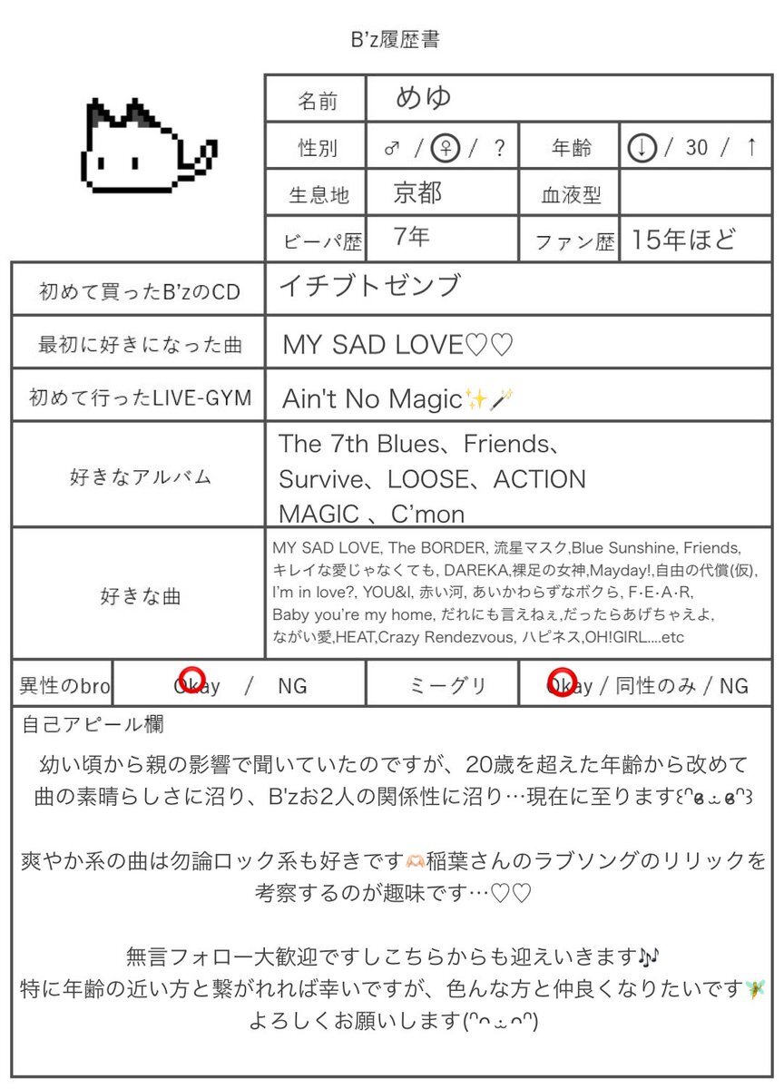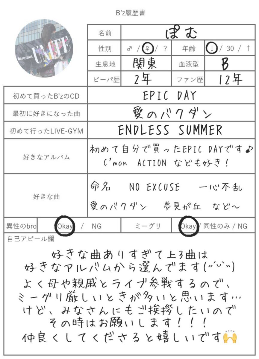 自己紹介のB’z履歴書です! ALTにも少し書いてます🙇♀️ ぜひよろしくお願いしますm(_ _)m #bz #Bz好きな人と繋がりたい #Broとしての自己紹介 #Bzファンと繋がりたい pic.x.com/Sgouv5AhuS