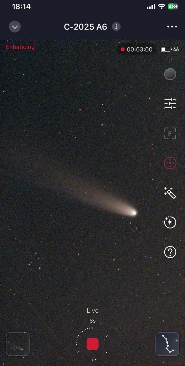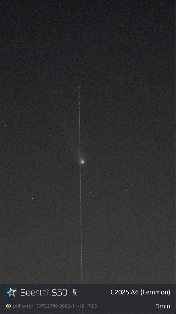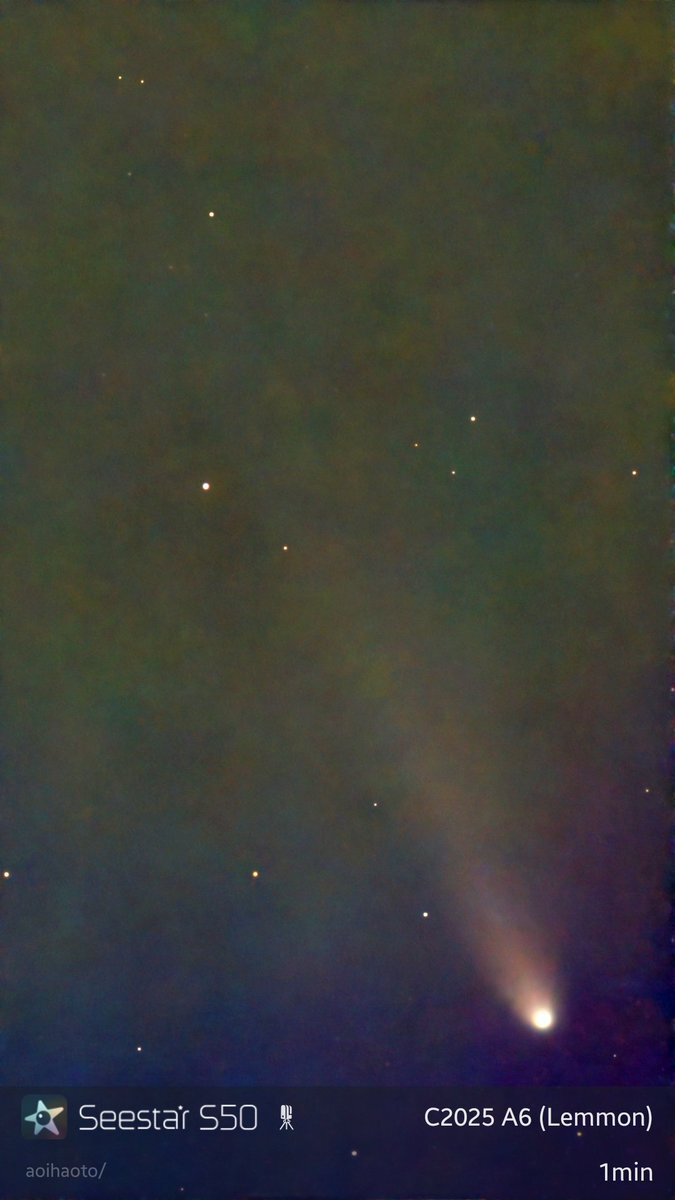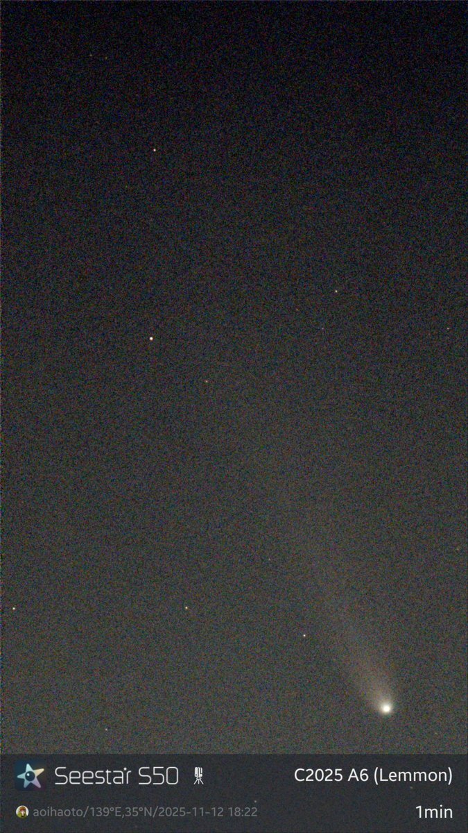 2025.11.10 嫁が怪我をしたおかげで、 仕事を休んで、夕食を作る前に 天体観測🔭 諦めていたレモン彗星また撮れました。 #c2025a6 #レモン彗星 #彗星 #スマート望遠鏡 #Seestar50 #天体観測 #空を見上げて pic.x.com/zmtFmRRwXG