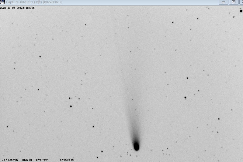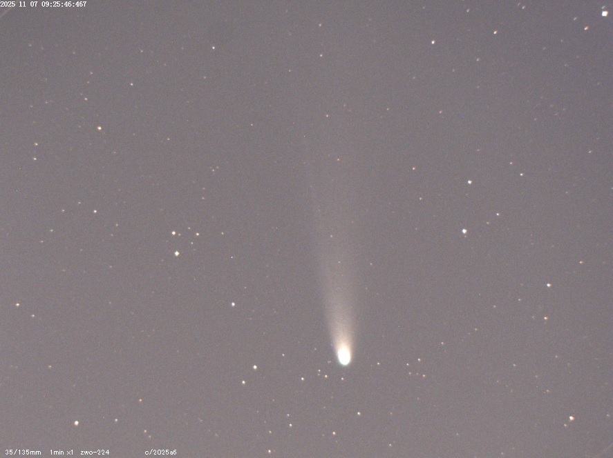C/2025 A6 (Lemmon) 2025.11.11 17h36(JST)- BORG76ED(SV0.8x)SV605CC GraxPartを新しいのに更新したのですが効果が強すぎるのか?何故かノイズが目立ってしまうので補正無しで、、(^^; #レモン彗星 #C2025A6 pic.x.com/pHIoR3Cjhk