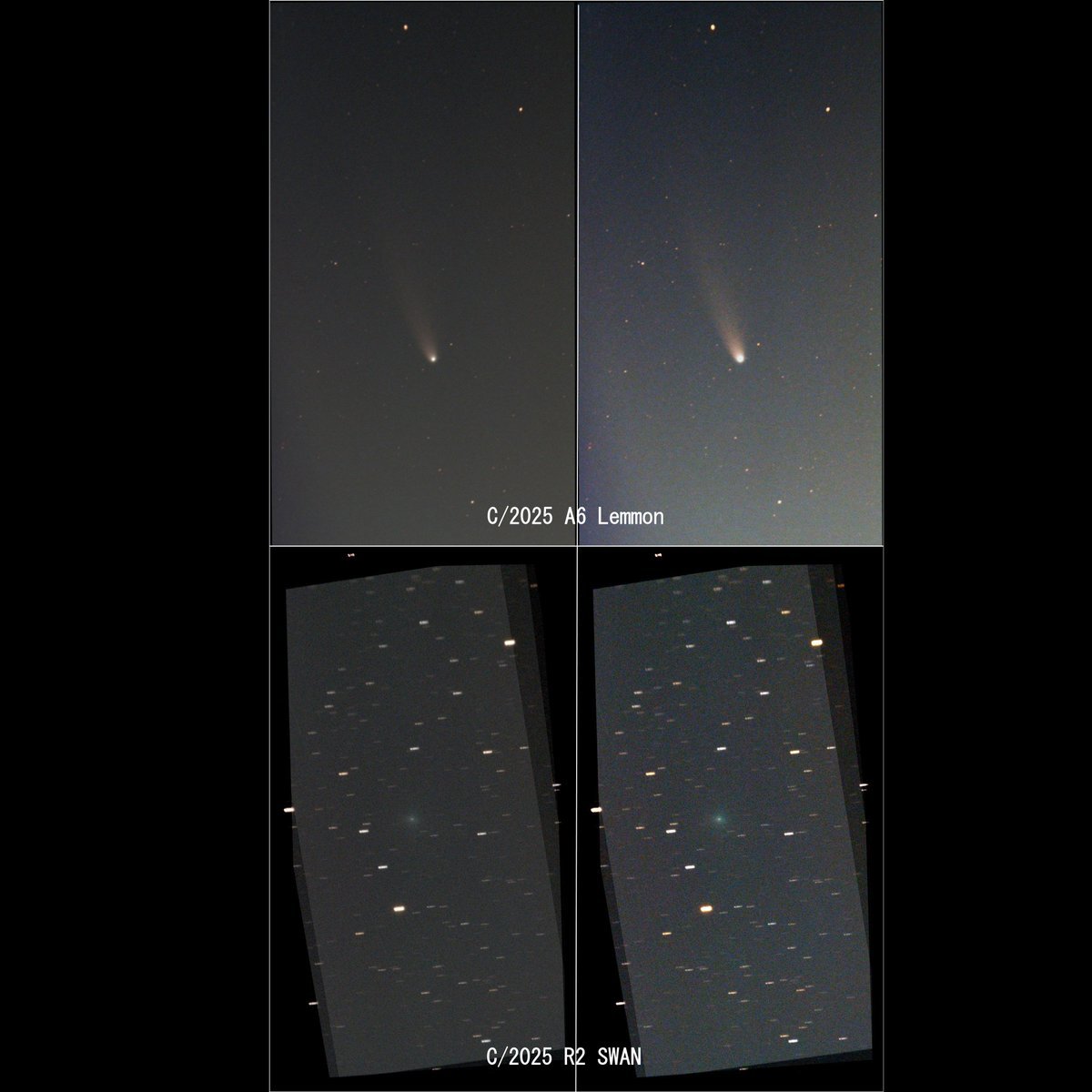 #レモン彗星 2025/11/10 17:57~18:02 10s×20枚 #スワン彗星 2025/11/10 18:22~18:52 10s×95枚 左:Sirilによるスタック 右:明度等画像調整 #SeestarS30 #C2025A6 #C2025R2 約一か月、晴れるたびに楽しませていただきました、ありがとう。 pic.x.com/4acue0ZkRF