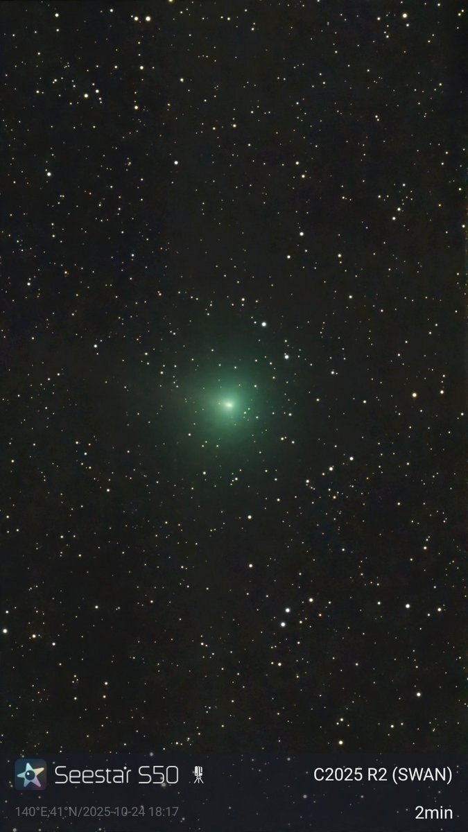 *レモン彗星 C/2025 A6 Lemmon 前回は奈良時代、次に地球に接近するのは1100年後。星々と比べると人の一生は一瞬だ。 撮影日 2025年10月23日 18:30 撮影機材:dwarf ii 撮影方法:露出時間15秒 x 50枚 UHC Filter rayastronomy.hatenadiary.jp #星のソムリエ #星空案内人 #レモン彗星 #c2025a6lemmon pic.x.com/KaPoLc5aS5