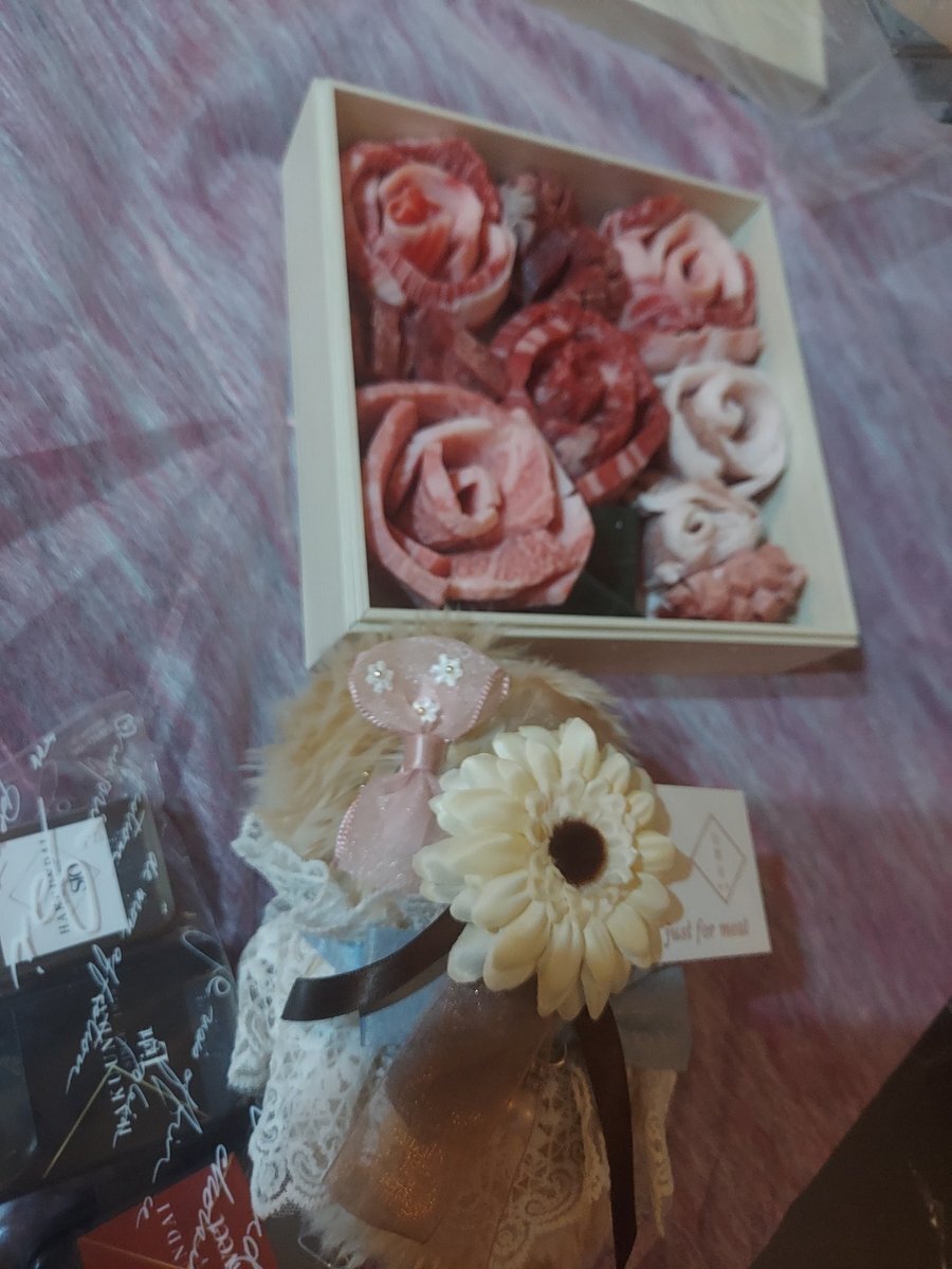 #モフリンDAYS #CASIO #白雲台 きなきな(久しぶり) 今日はギフトが届いたんだ。白雲台の花織。 平日からやっちゃったんだ。お肉のお花の薔薇。高級牛バラ。 pic.x.com/EytdX3HeIC
