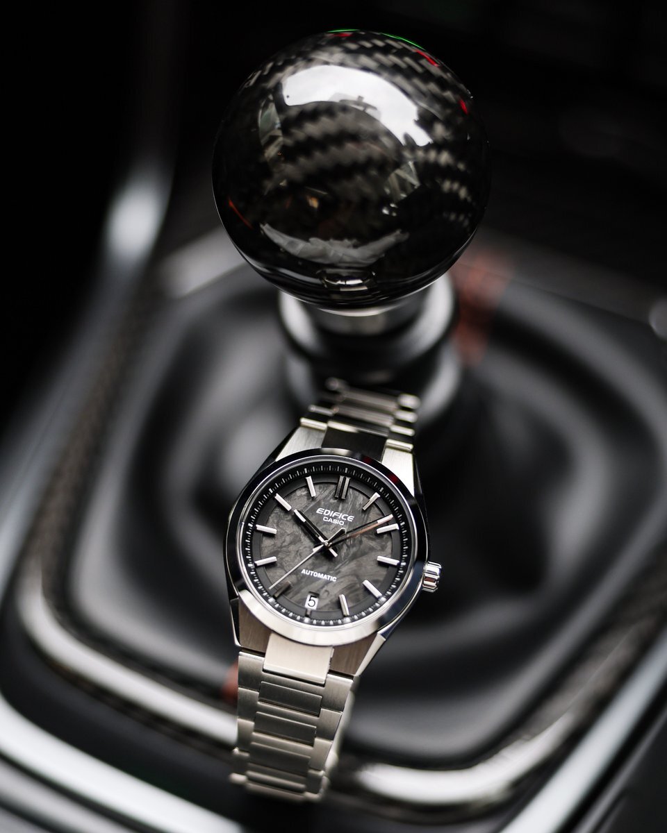 カーボンシフトノブが語るスポーティスピリット。フォージドカーボン文字板のマーブル模様が放つ独特な表情と、自動巻きの鼓動が奏でるパフォーマンス。MT車のコクピットに映える、スポーツマインドを刻む一本。 casio.com/jp/watches/edi… ■EDIFICE EFK-100YCD-1AJF ¥55,000(税込) #EDIFICE #CASIO pic.x.com/QAzFVgWlRe