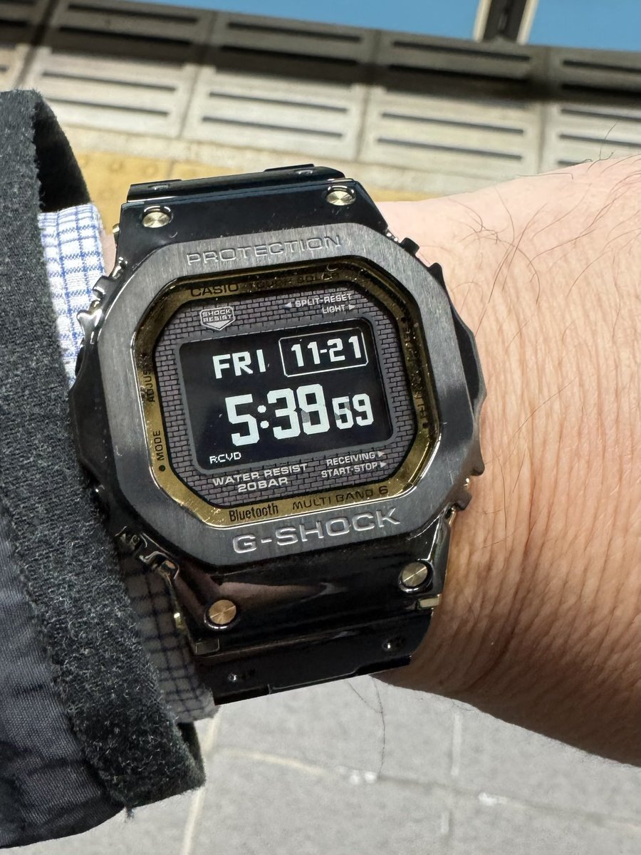おはようございます金曜日 本日は黒金フルメタルGショックで出勤します MIP液晶見やすいです #GShock #Gショック #GShockFULLMETAL #casio pic.x.com/qixQER79qM