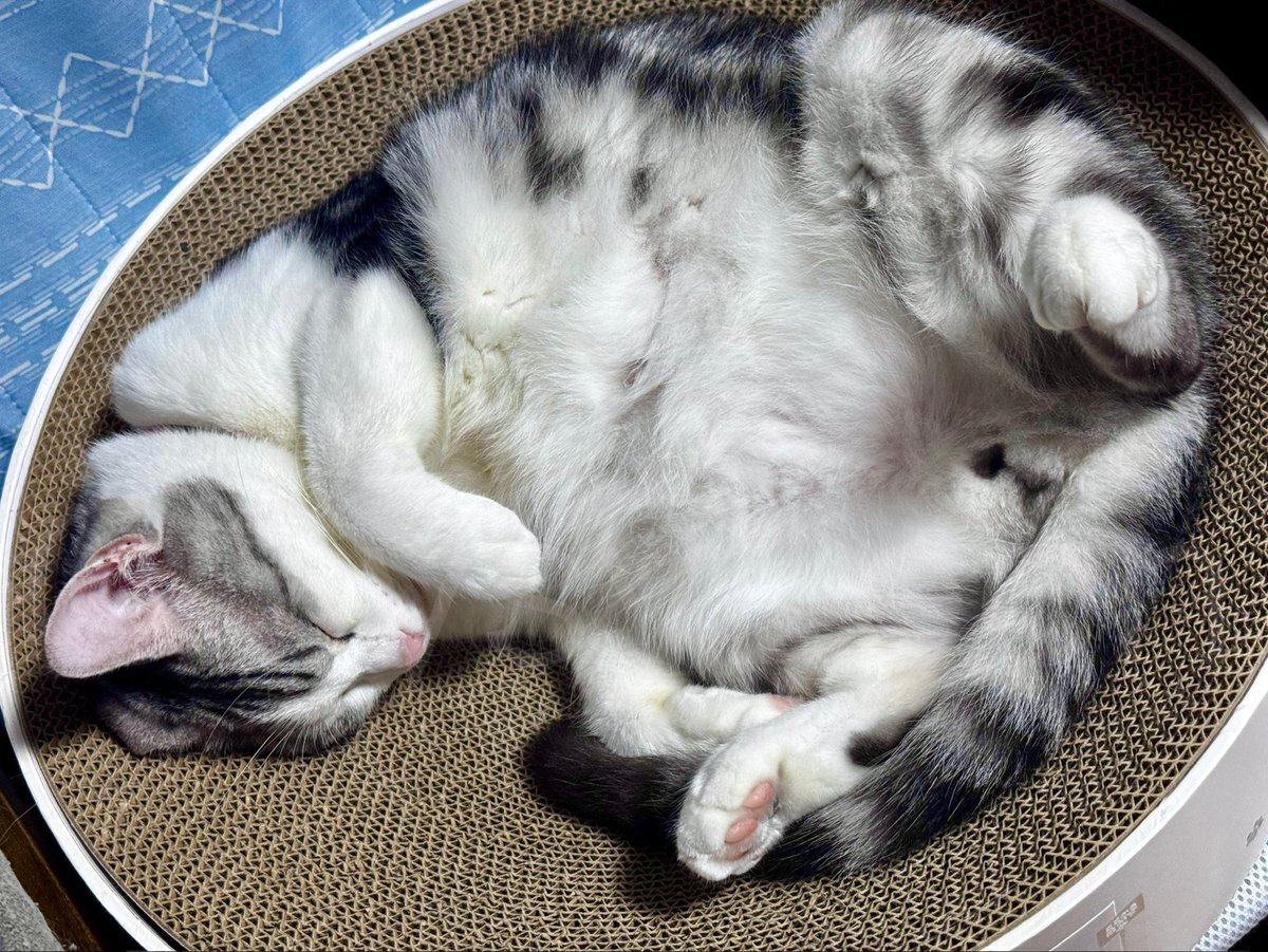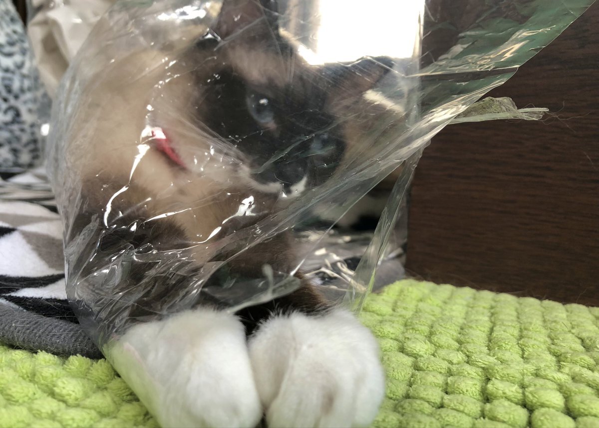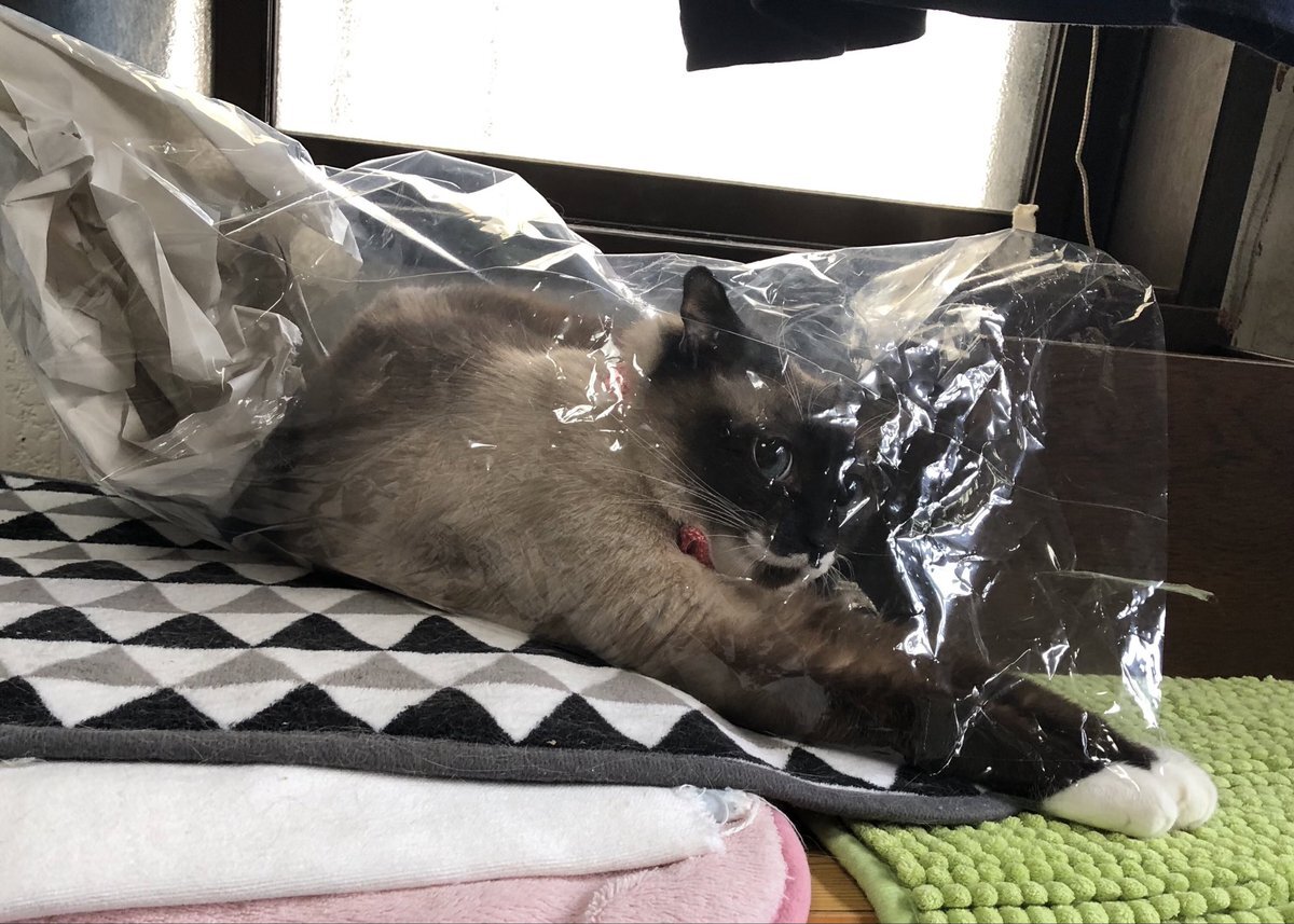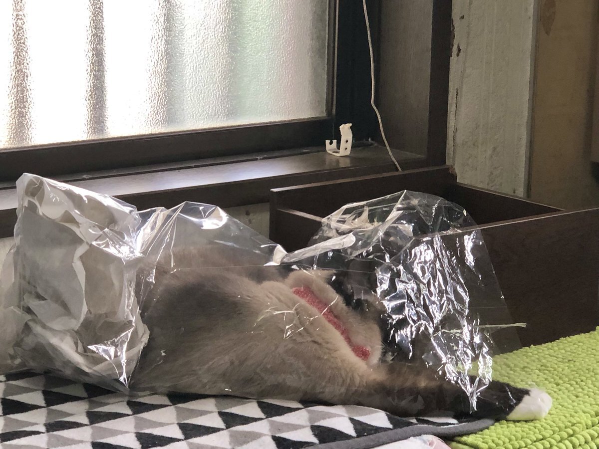 ひとしきりシャカシャカ音を出した後静かになったので見に行った現場の様子 #保護猫 #CatsOfTwitter #CatsOfX pic.x.com/YBVirYFTd1