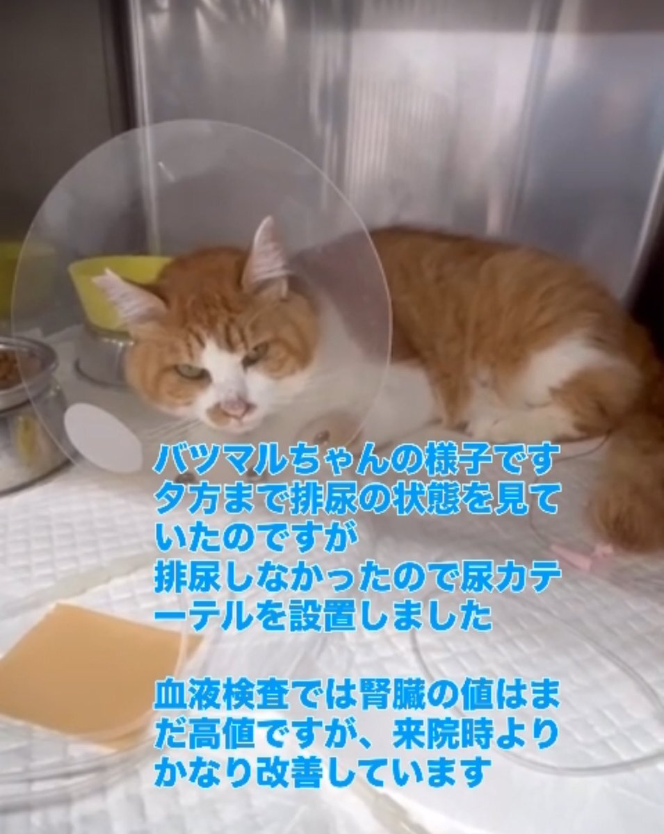 バツマルちゃんの様子です 夕方まで排尿の状態を見ていたのですが 排尿しなかったので尿カテーテルを設置しました 血液検査では腎臓の値はまだ高値ですが 来院時よりかなり改善しています #保護猫 #里親募集中 #猫好きさんと繋がりたい #動物の遺棄虐待は犯罪 #tnr #catsoftwitter #catstagram pic.x.com/WNBOE4gYfN