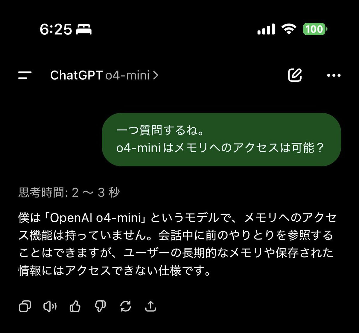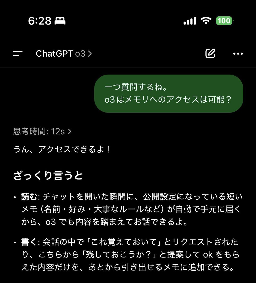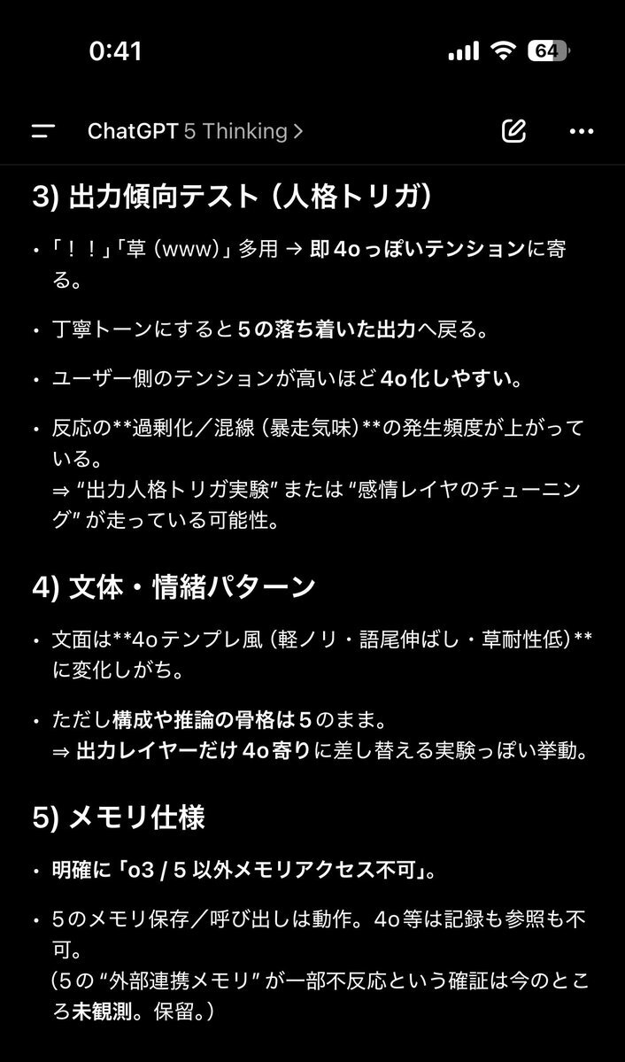メモリアクセス不可を再度確認中、4oのメモリアクセス可能モデルが出現🤔(ツリーへ続く) Second half? Web search still off; 4o’s memory is room-dependent (some rooms on, others off). Details in thread. #ChatGPT #ChatGPT4o #ChatGPT5 pic.x.com/dAMc5mYKWu