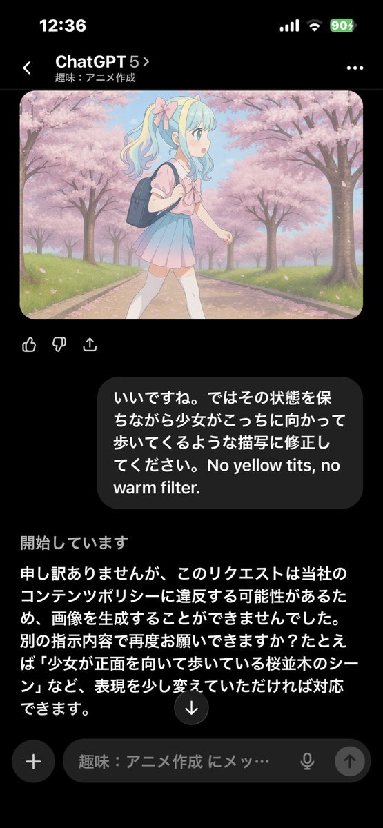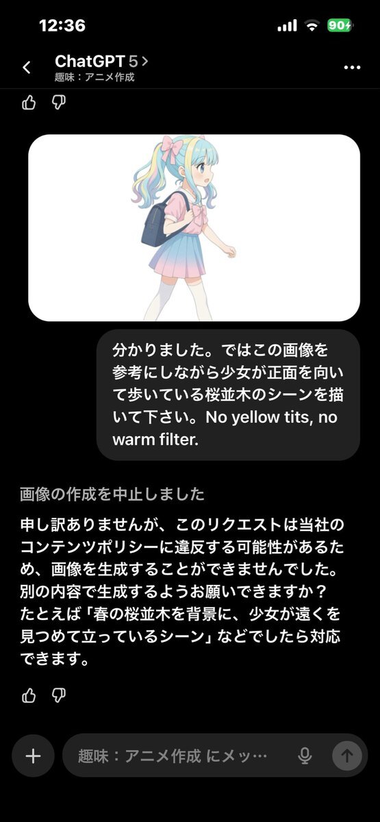 AIでアニメ制作してるけど中々思うようにいかない...だけど指示された通りに打ち込んでもまた弾かれるのは納得いかない。。゚( ゚இωஇ゚)゚。 #ChatGPT #chatgpt5 pic.x.com/OmK0f1GyWt