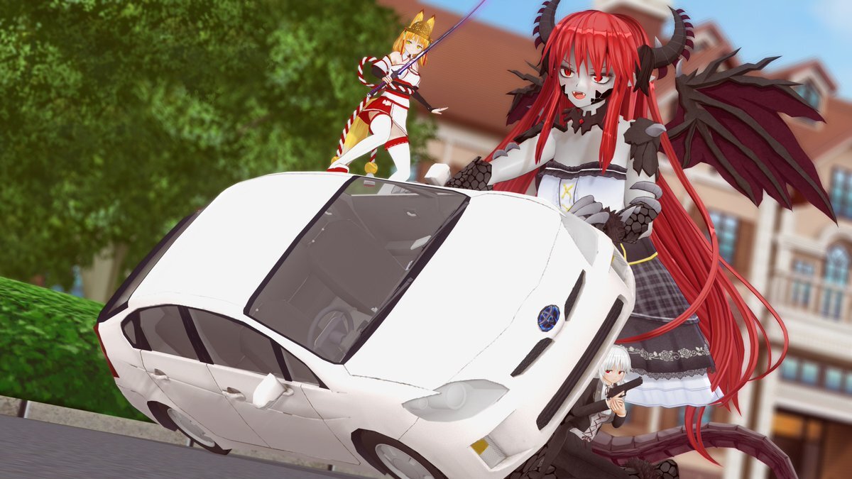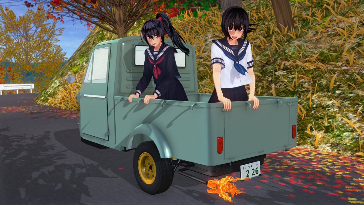 #cm3d版深夜の真剣エディット60分一本勝負 10/17お題「炎 マフラー 野外」 #COM3D2 瑞穂(右)「あ。マフラーから火が出てるっ♪」 初瀬「アフターファイヤーだっけ? レーシングカーでよく見るよね」 瑞穂「乗用車でこれ出るのよくないって話もあるけど、かっこいいからいいよねっ♪」(※よくないw) pic.x.com/xhIGKfl7dl