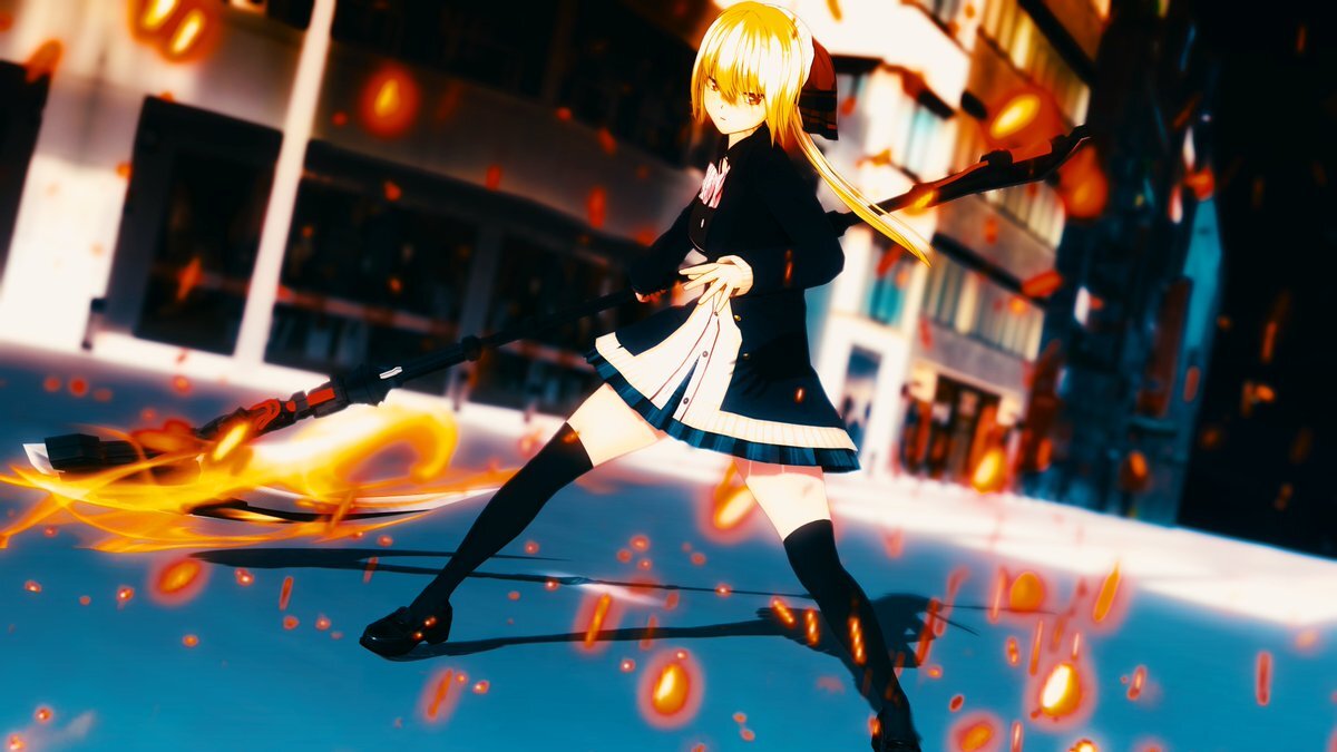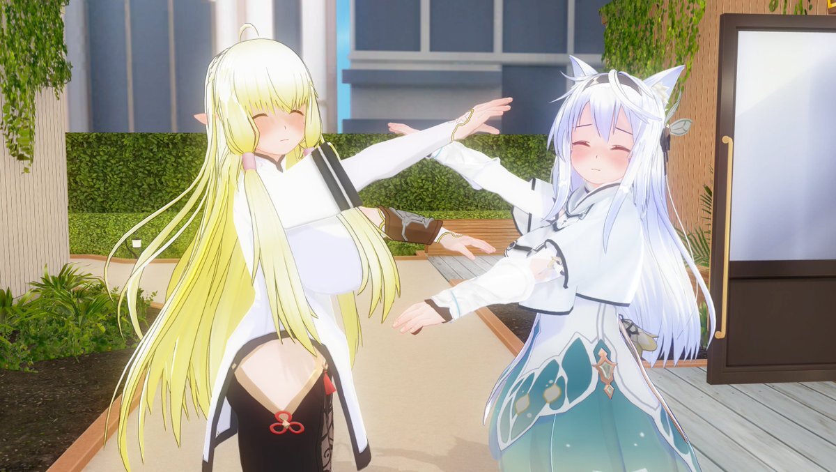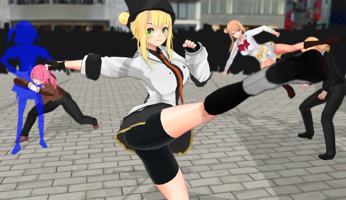 #cm3d版深夜の真剣エディット60分一本勝負 #COM3D2 本日のお題「戦闘 街中 金髪」より「戦闘・街中・金髪」になります もっと戦闘シーンぽく、鍔迫り合いとかポーズ付けるべきだろうにポーズ未熟故にこんな感じに…はい pic.x.com/R0RTmRsbAk