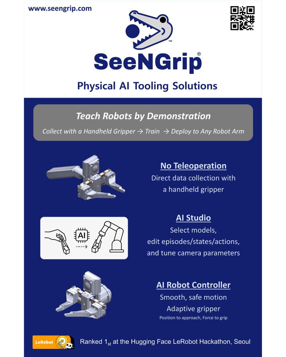 SeeNGrip、#IREX2025 に登場!🤖✨ 電動グリッパー ✔ 電源不要ツールチェンジャー ✔ デモで学習するAIグリッパー ✔ W3-52 でお待ちしてます! ミーティング希望 👉 crispy73@naver.com #IREX2025 #SeeNGrip #RobotGripper #ToolChanger #AIGripper #PhysicalAI #Robotics #Cobot #Automation pic.x.com/w7vW76KtbL
