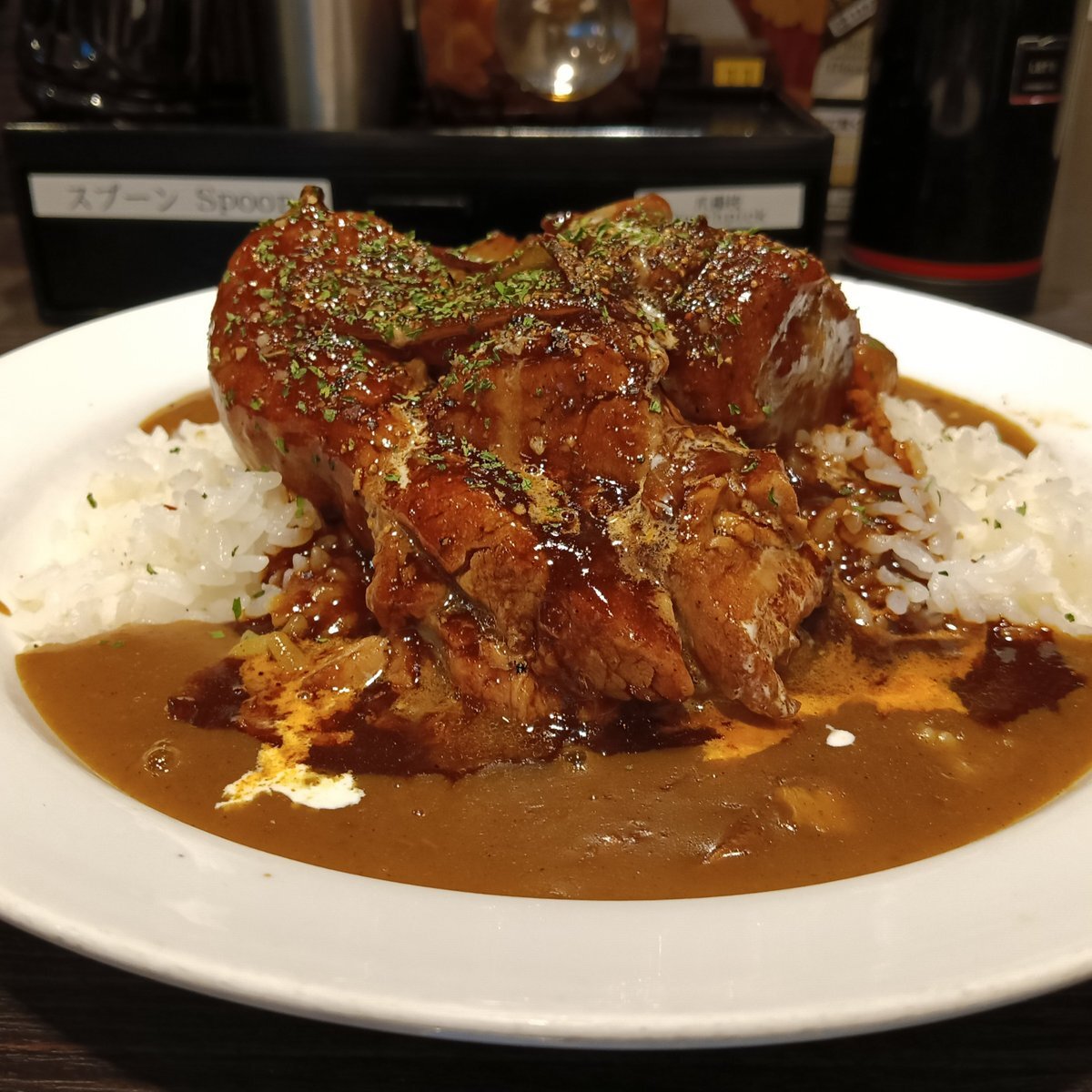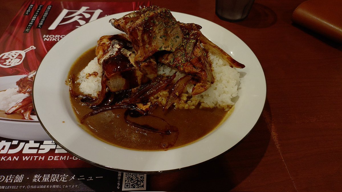 ココイチの店舗限定・期間限定の肉塊カレー スプーンどころか自重で分割できるほどホロホロな肉塊!そしてデミグラスソースがんまあああい Lv1~Lv4まであって今回はLv2をイタダキました。 #にゃほ飯 #CoCo壱番屋 pic.x.com/s3ws5EBqr2
