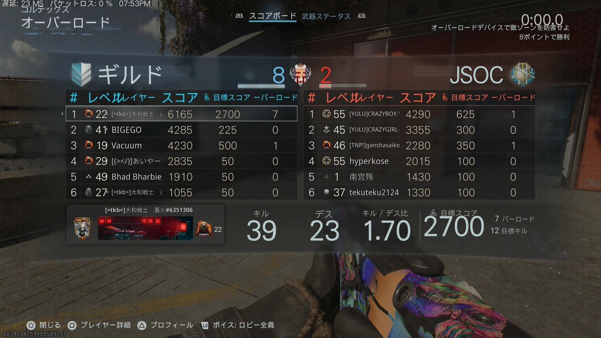 ざふと君とのコラボ配信に、 むたさん&愛すさん参加🤝✨ めっちゃ爆笑した!!!笑 チェリーブロッサムのスキン取れた🌸 次の狙ってるつはSR…心折れないかな… イライラしないかな…😂 今日は成績良かったから、満足〜‼︎ #CODBO7 #BO7 pic.x.com/PDkKRTrRDh