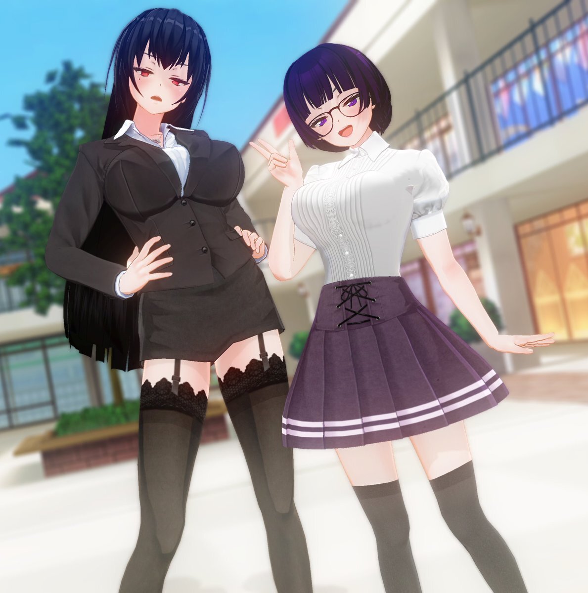 #ミニスカートの日 #COM3D2 #カスタムオーダーメイド3D2 今日はそういう日らしいので、センセの撮影に付き合ってあげてるオリキャラの朱天チャンと羽衣になります。 pic.x.com/va2UmmH3Qm