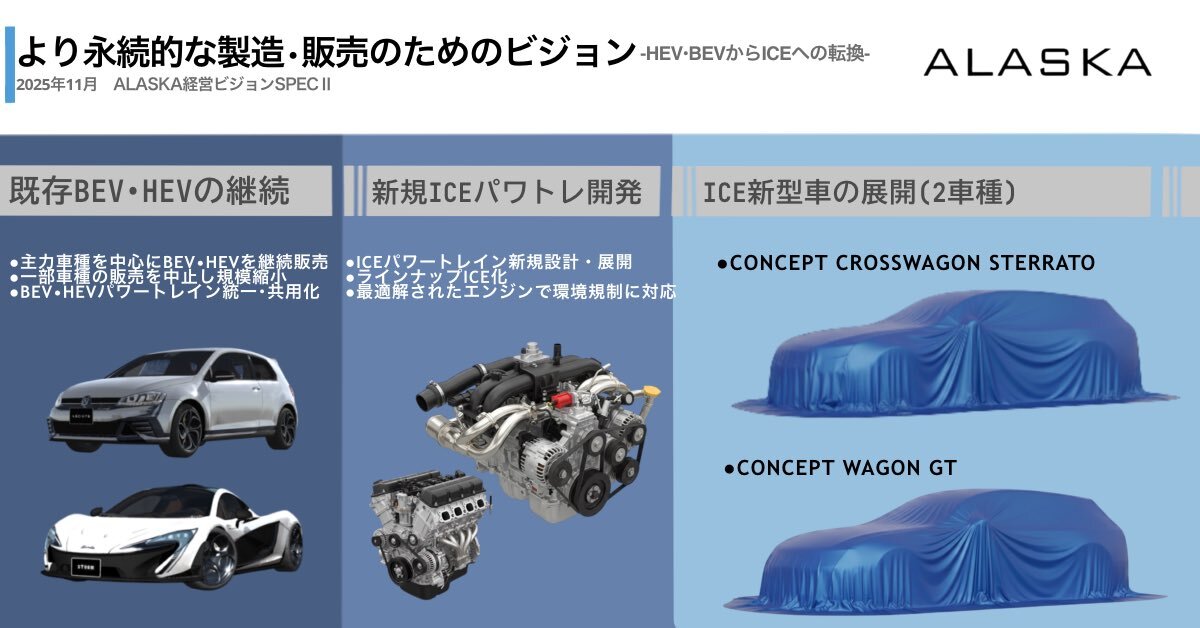 【ALASKA経営ビジョン SPECⅡ 】 BEV•HEVの規模縮小やICEパワトレ新開発など 永続的な製造・販売のためのビジョンをALASKAが公開 #カーパーキング #カーパーキング架空車 #架空車 #CPM #Carparkingmultiplaye pic.x.com/15s4fEsLGo