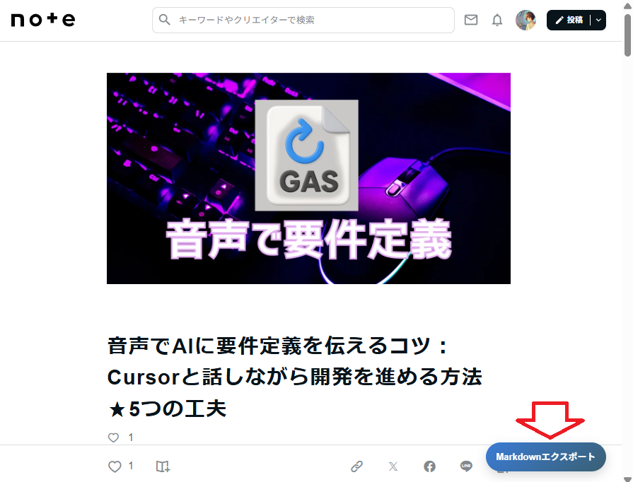 Cursor拡張機能のCodexで初めて作った成果物は note記事をMarkdown形式でエクスポートするボタン! サクッと短時間で作るちょっとしたものだからモードはlowを選択!クリック数回デバッグ1回で思い通りの拡張機能がすぐできてカンゲキ✨ #Codex #Cursor #バイブコーディング pic.x.com/aycg6avC67
