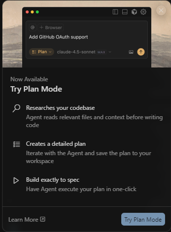 #Cursor にPlanモードが生えて来てる。 これはつまり㌔さんってこと・・・!? pic.x.com/4SlURoHWOQ
