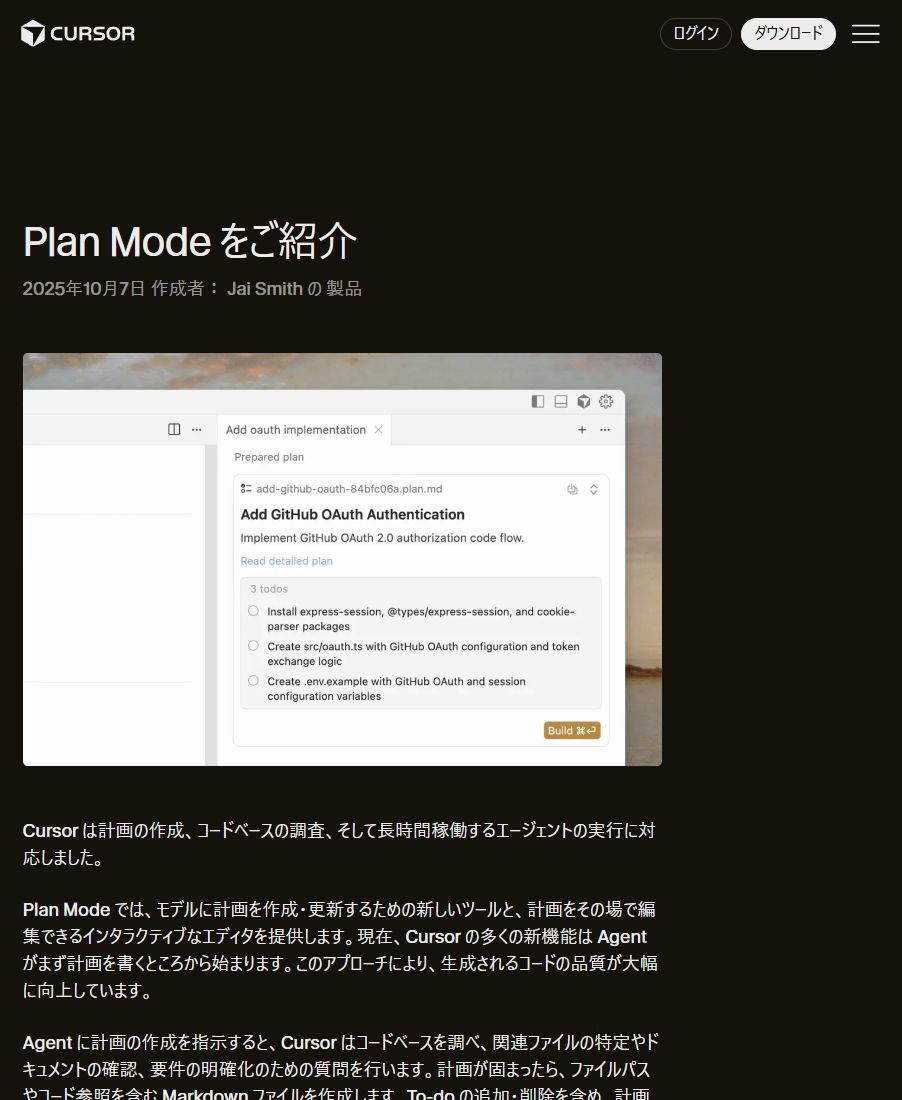 AIが開発の「計画」まで立ててくれる時代に突入!🚀 「計画」までAIが自動作成!🤖✨ AI開発ツール #Cursor の新機能「Plan Mode」が革新的すぎます!🚀 コードを書く前の仕様検討やタスク分解、時間がかかりませんか?Plan pic.x.com/yHyfUgi9T0