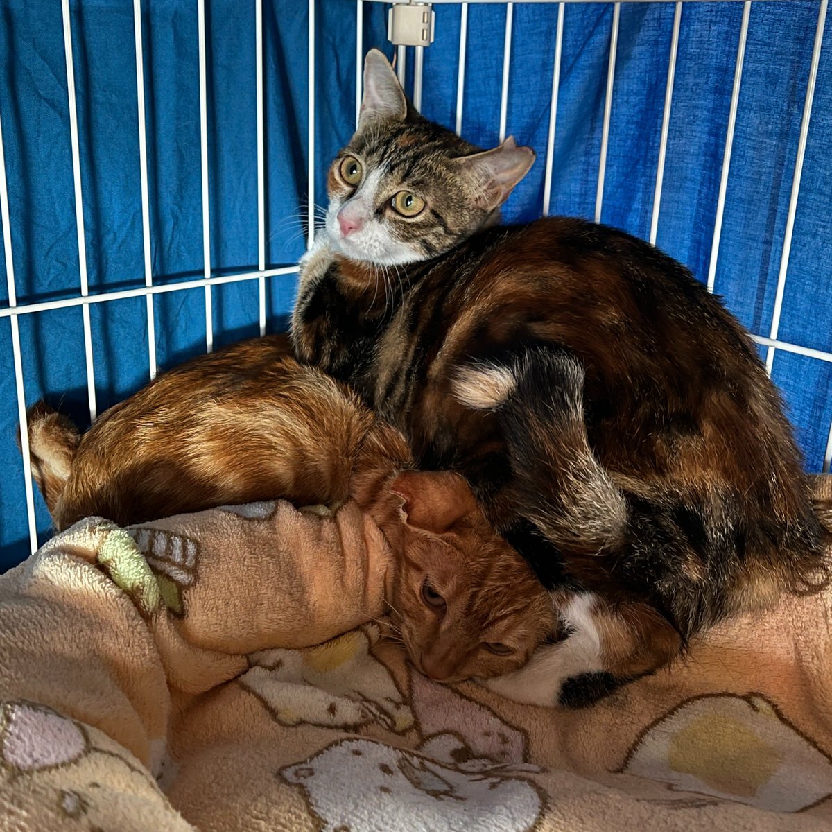 預かりさんちのチャンク♀とチャッキー♂。 三毛猫がチャンク。茶トラがチャッキー。 人が覗くと、ケージの奥に逃げてくっつきます😅 #CWC #CWCチャンク #CWCチャッキー #里親募集中 #保護猫の種 #保護猫 #保護猫を家族に #大阪 #ねこ # #譲渡会 #預かりボランティア募集中 (ボラH) pic.x.com/0DBPrRm6Qr