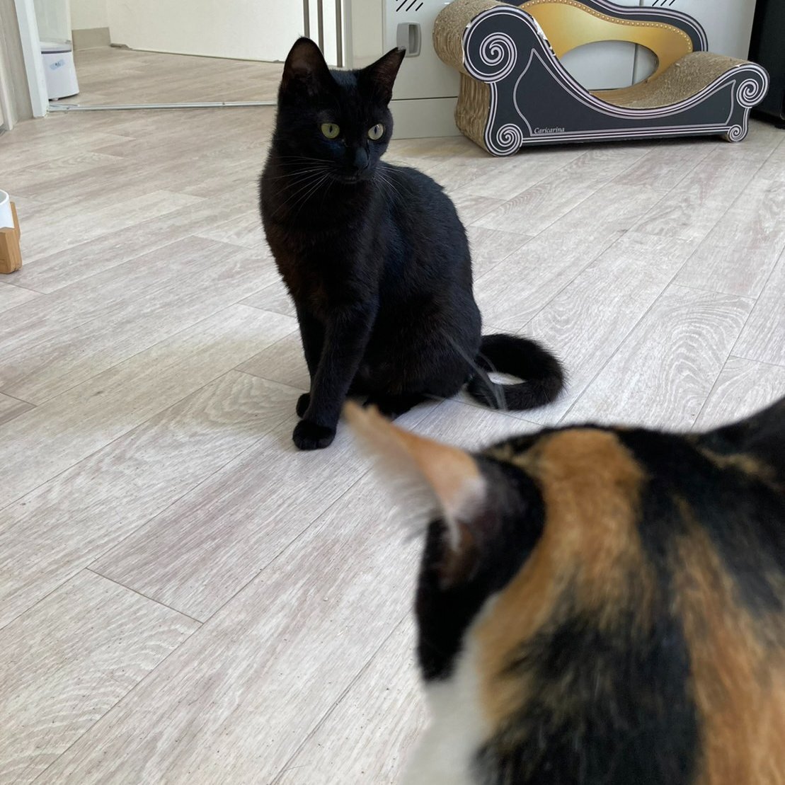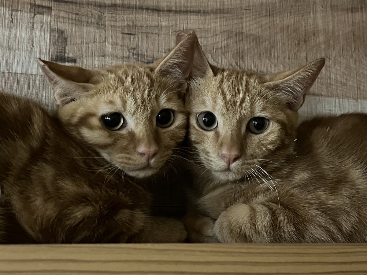 メイ「グラビア撮影中…✨」 瞳「生意気よ、あんた。(ズズイ)」 (スタッフH) #CWC #CWCメイ #CWC瞳 (手前) #保護猫の種 #保護猫 #保護猫を家族に #保護猫カフェ #里親募集中 #猫のいる暮らし #大阪 #ねこ # #譲渡会 #キジ猫 #三毛猫 #京セラドーム大阪 近く pic.x.com/yY1uKDYD3i