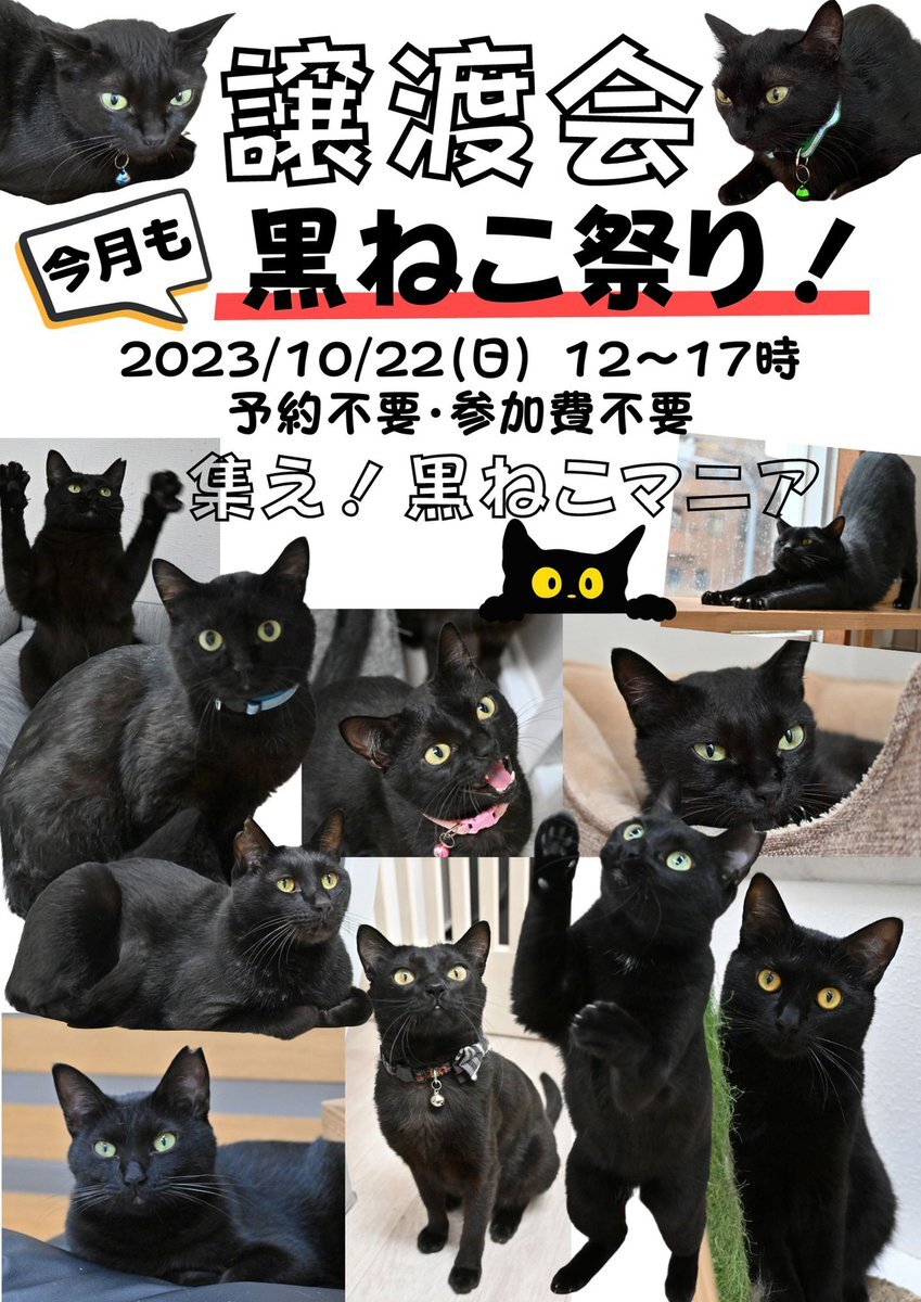 今月もやります! 🐈‍⬛🐈‍⬛黒ねこ祭りの譲渡会🐈‍⬛🐈‍⬛ 2023/10/22(日)12~17時 (先月は全然里親希望のお声がかからなかったの…?) いえ。 黒ねこも何匹かトライアルに出発しましたが、まだまだ居るのです。笑 #CWC #保護猫の種 #保護猫 #譲渡会 #保護猫を家族に #猫のいる暮らし #黒猫 pic.x.com/yIIgJziAye
