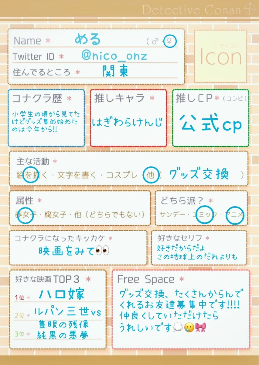 🪄︎︎お友達探し 繋がり先は永久🗝垢です 一緒にカフェ等行ける方探してます⭐️ ❤️or♻️で気になった方お迎えします🍀*゜ ⌒⌒⌒⌒⌒⌒⌒⌒⌒⌒⌒⌒⌒⌒⌒ profcard.info/u/HR3sKUKnRdMb… ︶︶︶︶︶︶︶︶︶︶︶︶︶︶︶ #コナン好きな人と繋がりたい #DC夢女子さんと繋がりたい #コナクラさんと繋がりたい