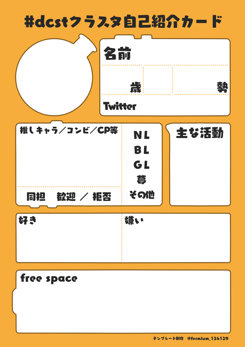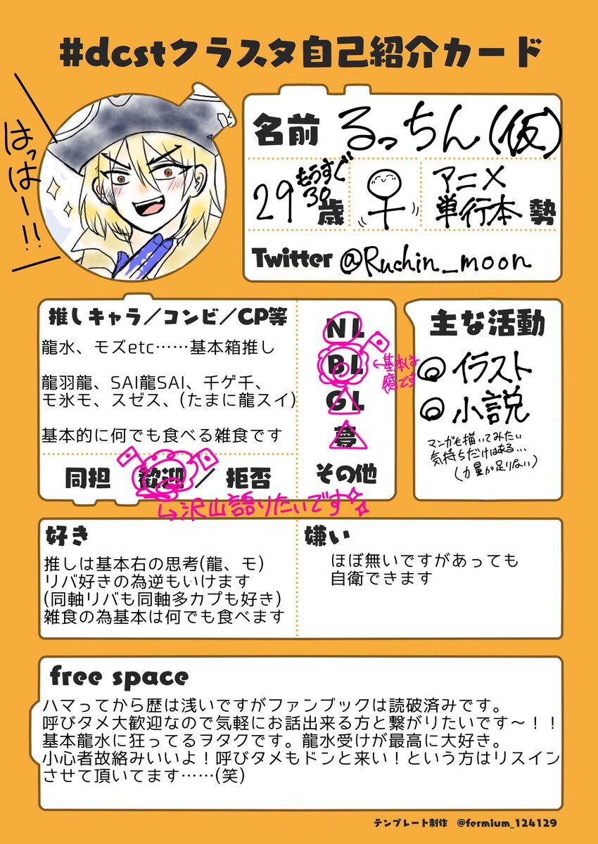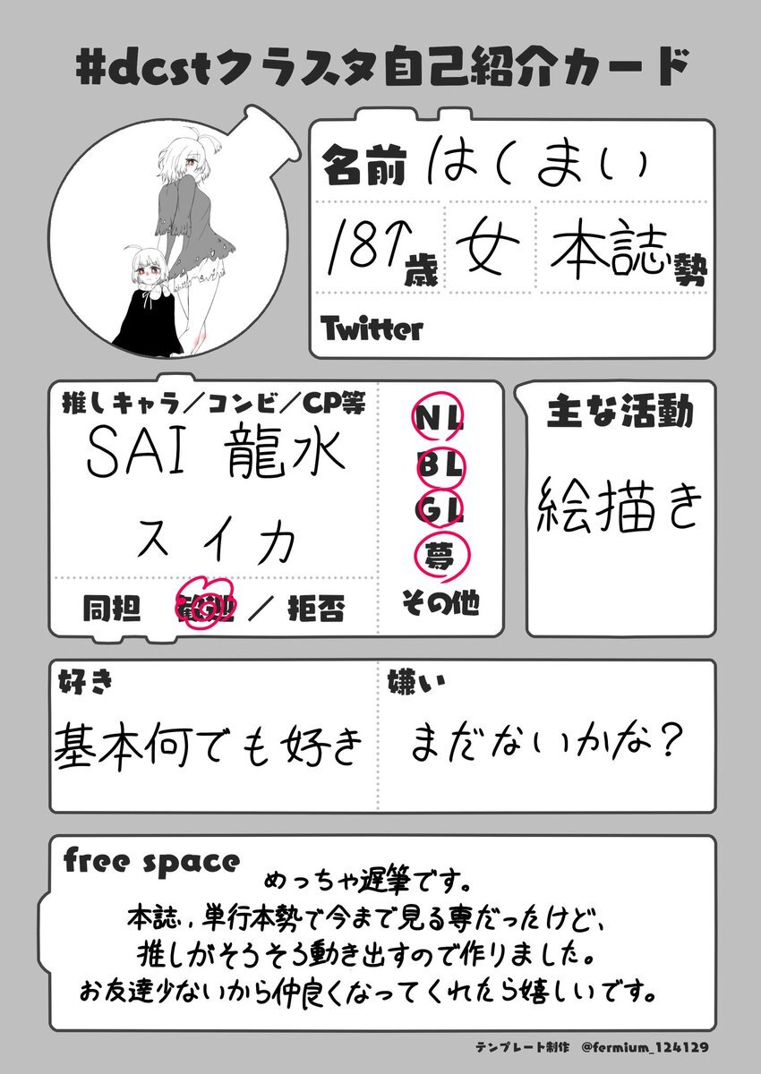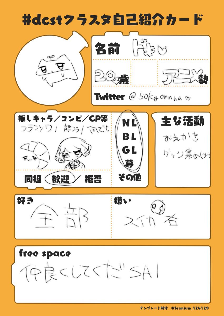 素敵なテンプレお借りしました✨ 頻度少なかったりバラバラですが色んな人と仲良くできたら嬉しいです‼️ #dcstクラスタ自己紹介カード #dcstクラスタさんと繋がりたい #dcst絵描きさんと繋がりたい pic.x.com/grfMZKxN6x