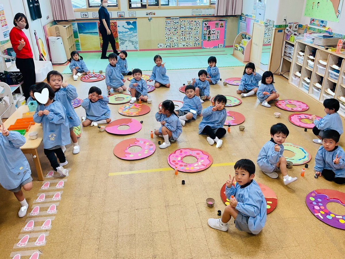 年少OCEANクラス お部屋がドーナツショップに🍩 カラフルなデコレーションの美味しそうなこと さて、どちらに届けましょうか #preschool #donuts #doughnut #ドーナツ #ドーナツショップ #ハロウィン #halloween #yummy #decoration #京都 #保育園 #英語保育 #教育 #2歳児 #3歳児 #園児募集 #みんなで pic.x.com/DLByqicxg2